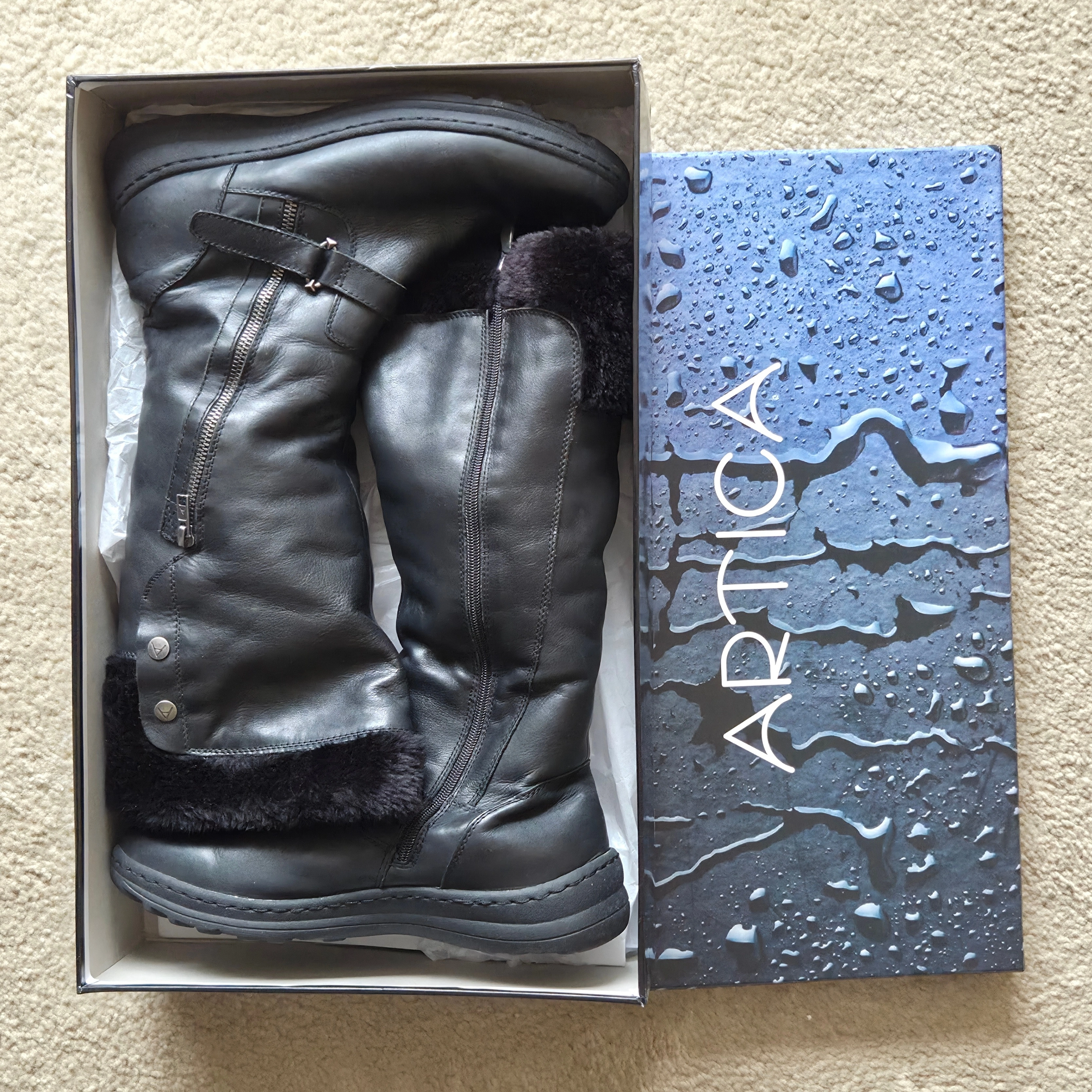 You are interested in a pair of Artica waterproof winter boots - Women's size 11 for sale. Retails at Browns shoes for $298. They are warm and ready to wear.
