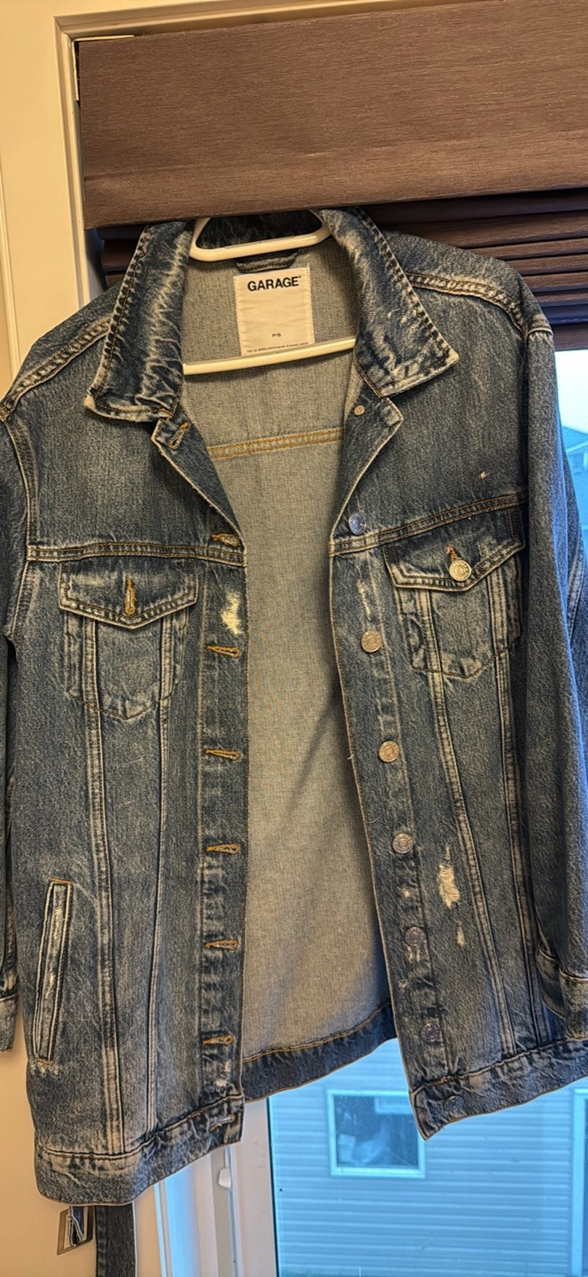 Selling a Garage denim jacket in size P/S. It's a stylish and comfortable piece, perfect for layering or wearing on its own. Great for adding a touch of casual cool to any outfit!