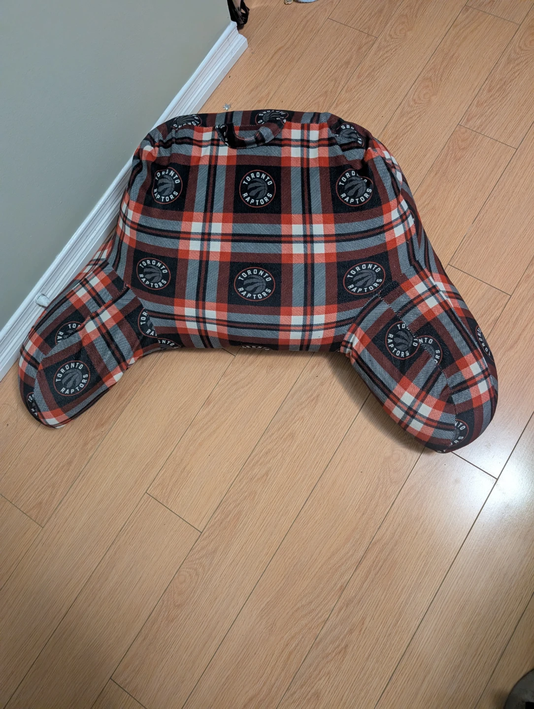 This reading pillow features the Toronto Raptors logo throughout its plaid design. It's a comfortable way to support yourself while reading or lounging. Its fabric is soft and durable.