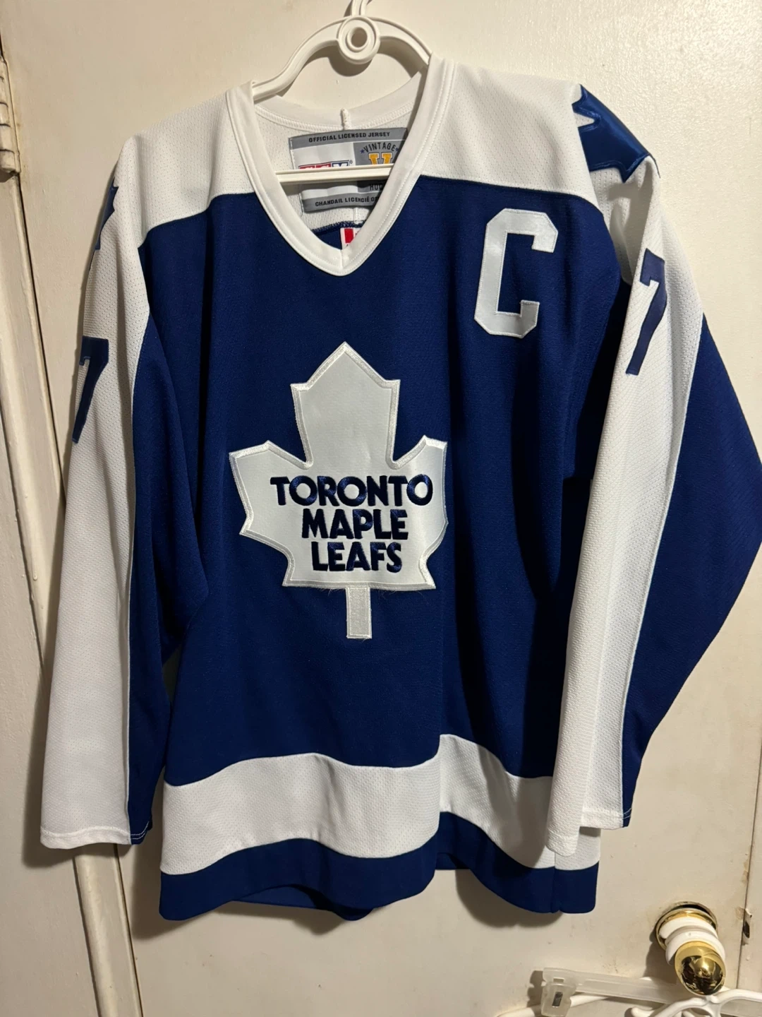 This is a CCM "Vintage" Toronto Maple Leafs hockey jersey. It's an official licensed jersey, made in Canada. Size is large.