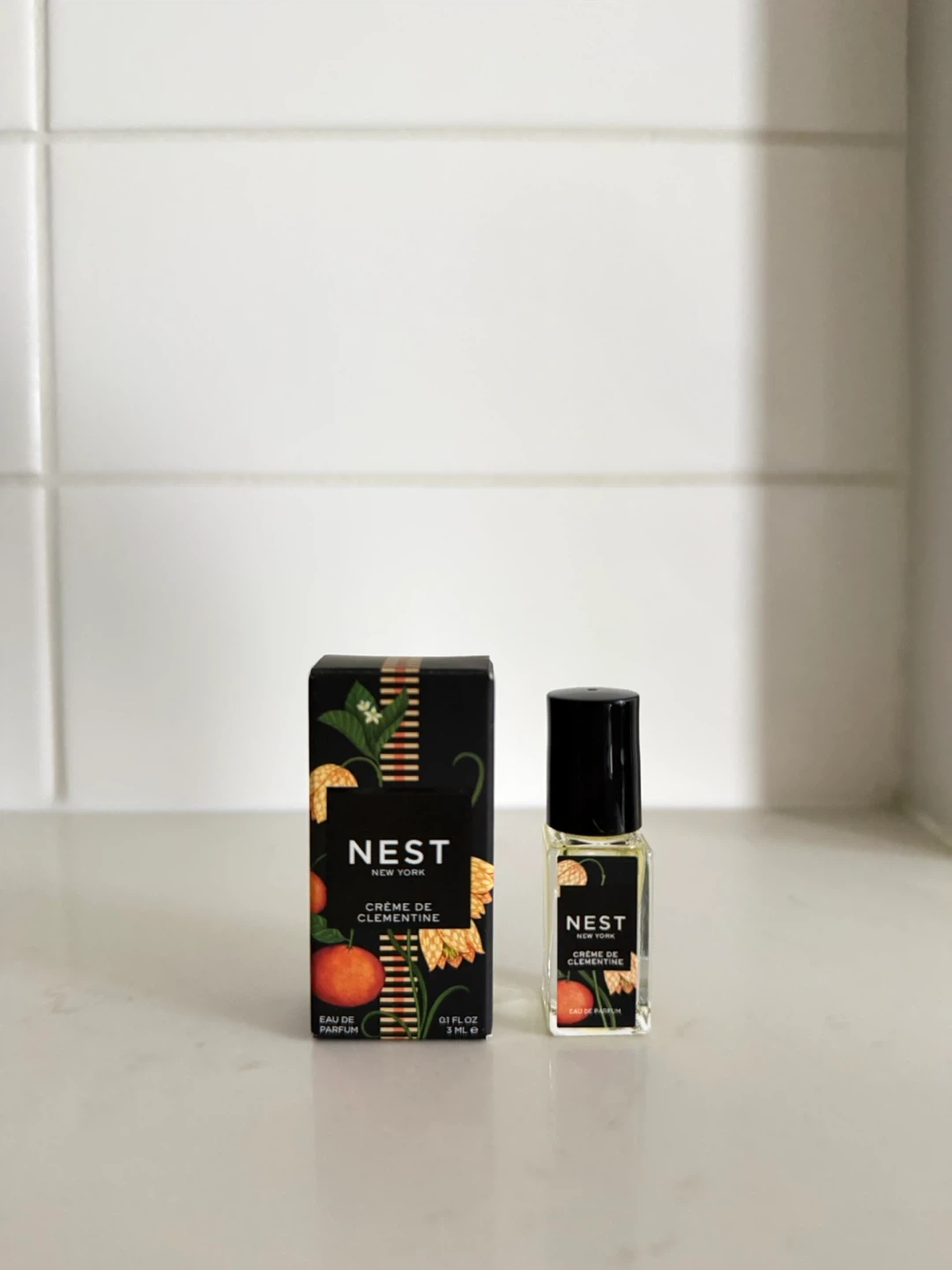 A travel-sized rollerball of NEST New York's Crème de Clementine Eau de Parfum. This fragrance captures the scent of ripe clementines with a touch of floral and amber notes. It's perfect for on-the-go application or trying out a new scent!