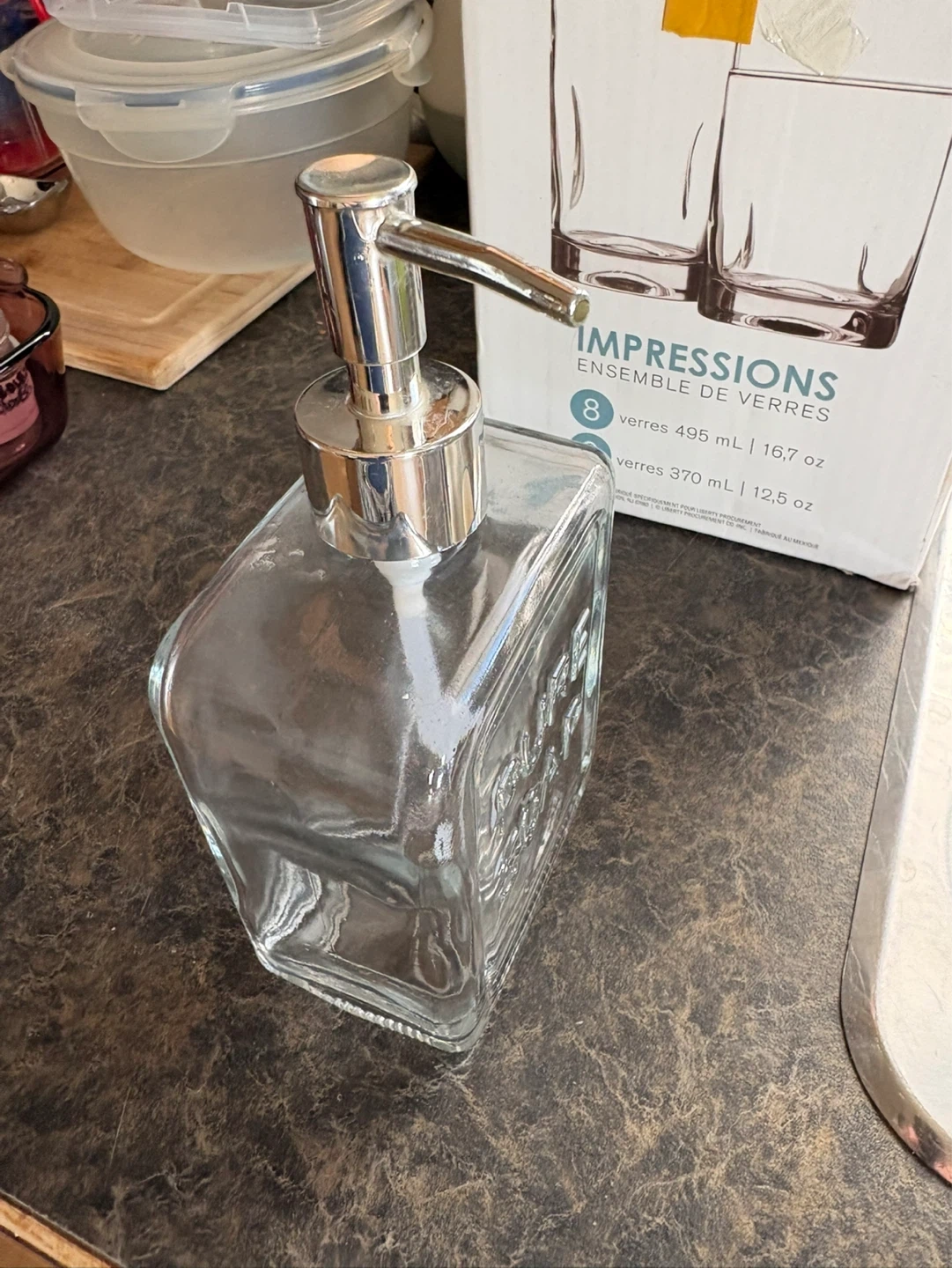 Clear Glass "Pure Soap" Dispenser
