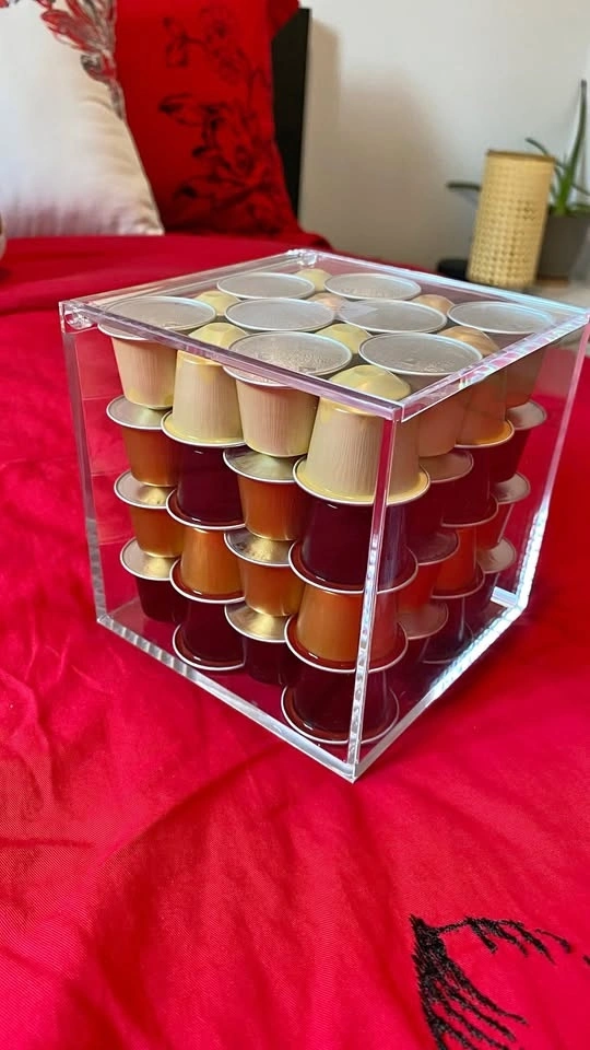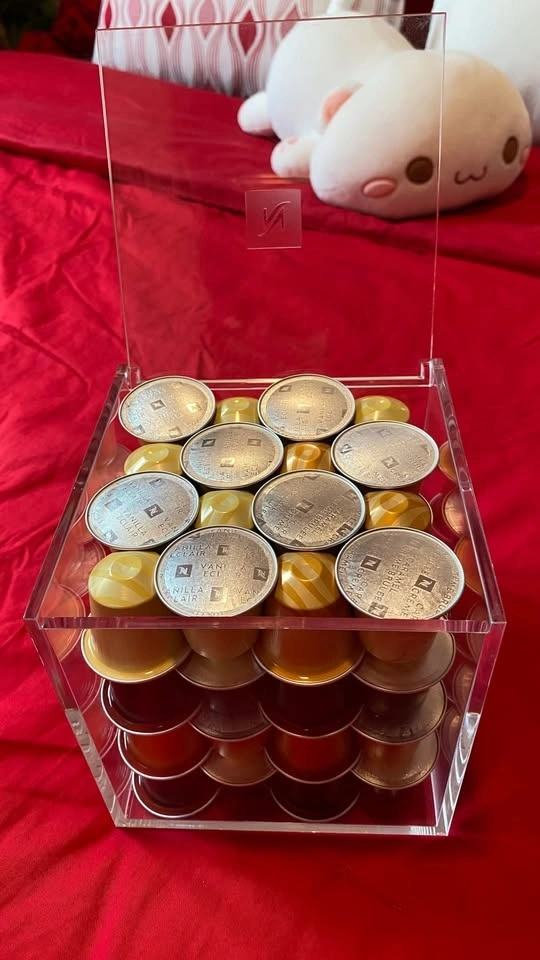 Original Nespresso View Cube Capsule holder that stores up to 50 Original capsules or 19 Vertuo capsules. Stylish cube design, perfect for organizing your coffee station. Brand: Nespresso. Condition: Used – Excellent. Original price: $33 CAD + tax. Selling price: $20 CAD. Let me know if you're interested!