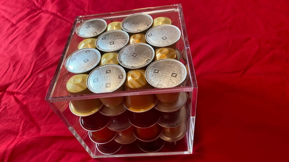 Original Nespresso View Cube Capsule holder that stores up to 50 Original capsules or 19 Vertuo capsules. Stylish cube design, perfect for organizing your coffee station. Brand: Nespresso. Condition: Used – Excellent. Original price: $33 CAD + tax. Selling price: $20 CAD. Let me know if you're interested!