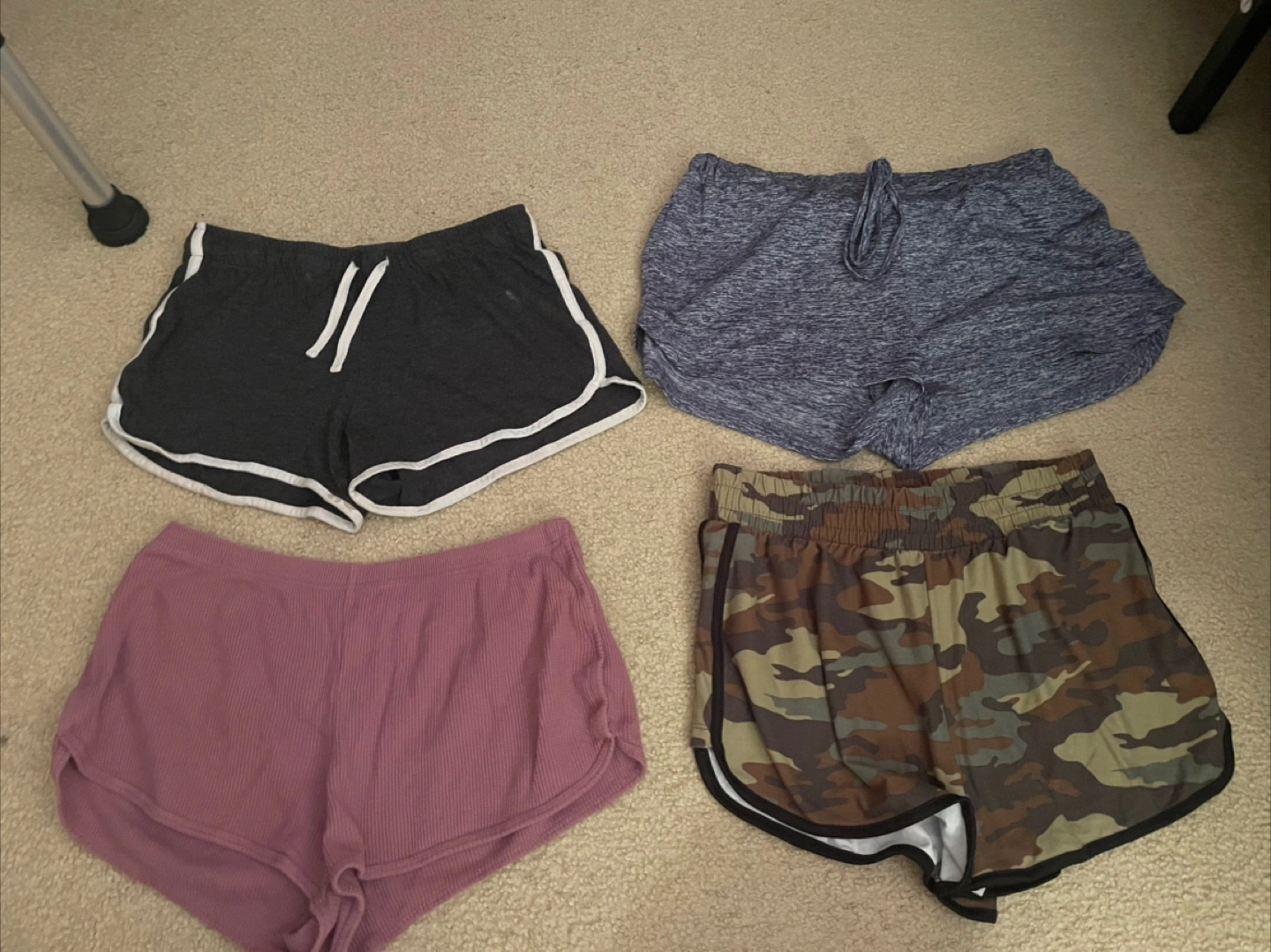 Selling a collection of women's shorts! There are four pairs in total, featuring different colours and styles. Perfect for workouts or lounging around the house. All size medium expect for the light grey. All for $5 or $3 each
