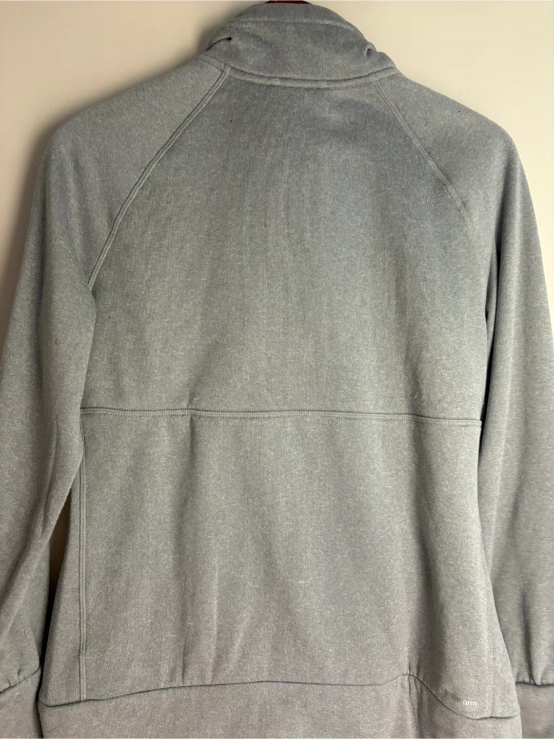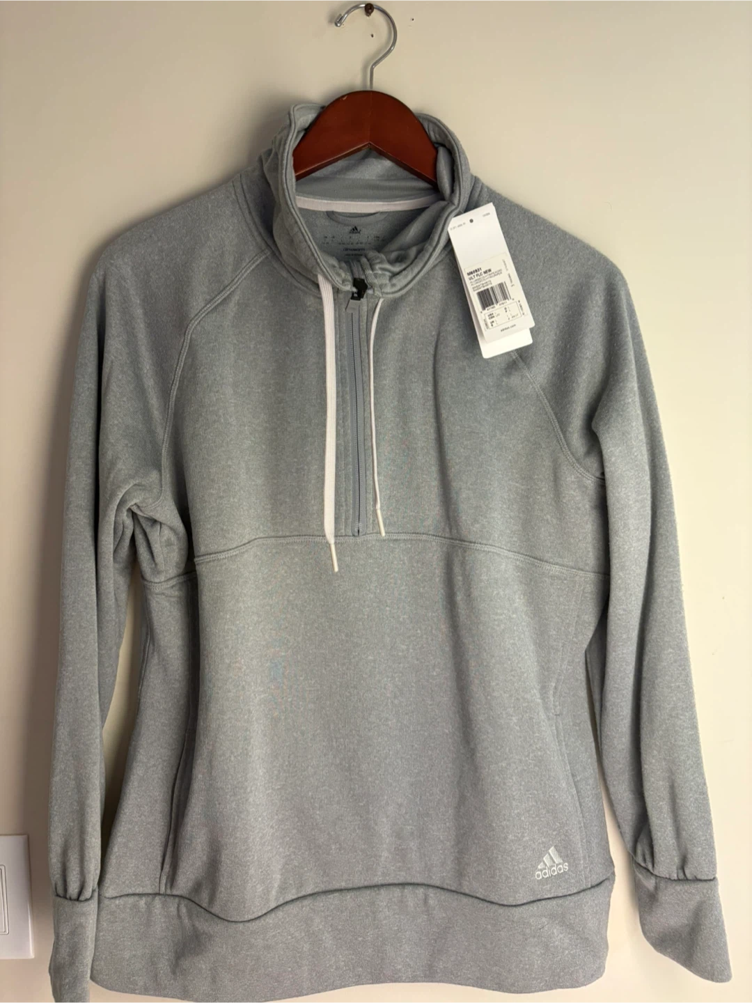 This is an Adidas Women's Ultimate Fleece pullover in grey. It features ClimaWarm technology for warmth. The size is large.