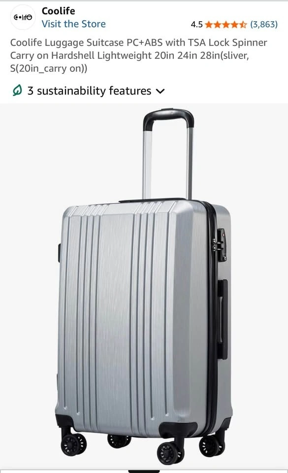 Coolife Luggage Suitcase 20in Carry-on Hardshell Spinner