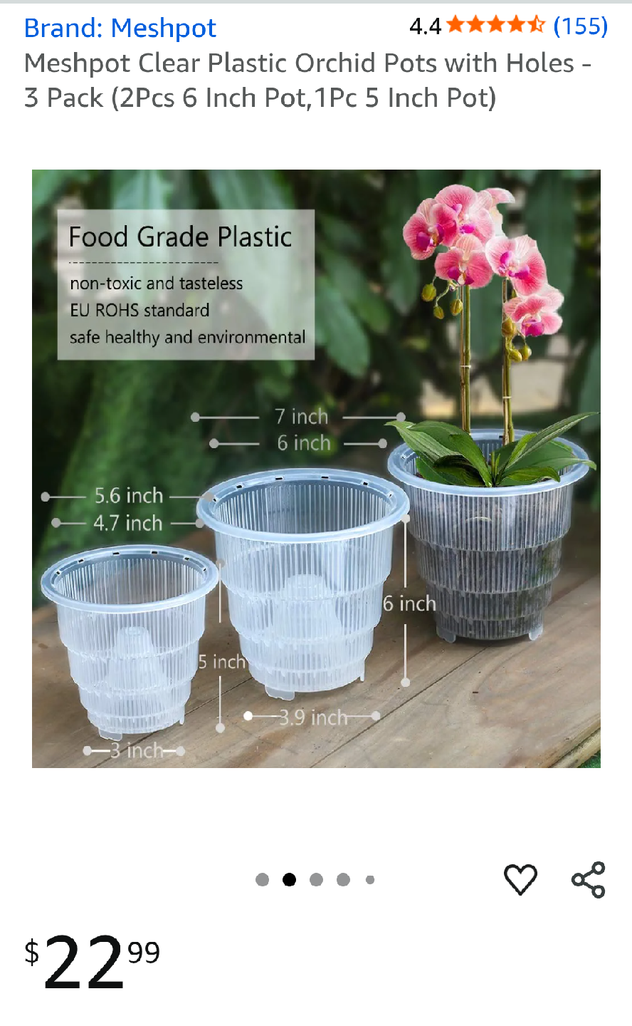Selling a set of Meshpot clear plastic orchid pots! Included are 2 6-inch pots and 1 5-inch pot.