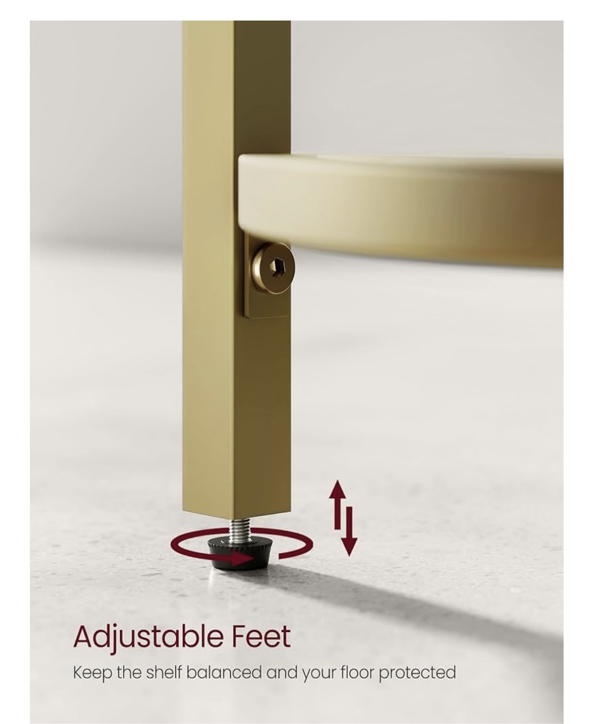 This VASAGLE corner shelf is perfect for utilizing corner spaces! It features 5 tiers of robust tempered glass shelves that are easy to clean. The gold frame adds a touch of elegance to any room.