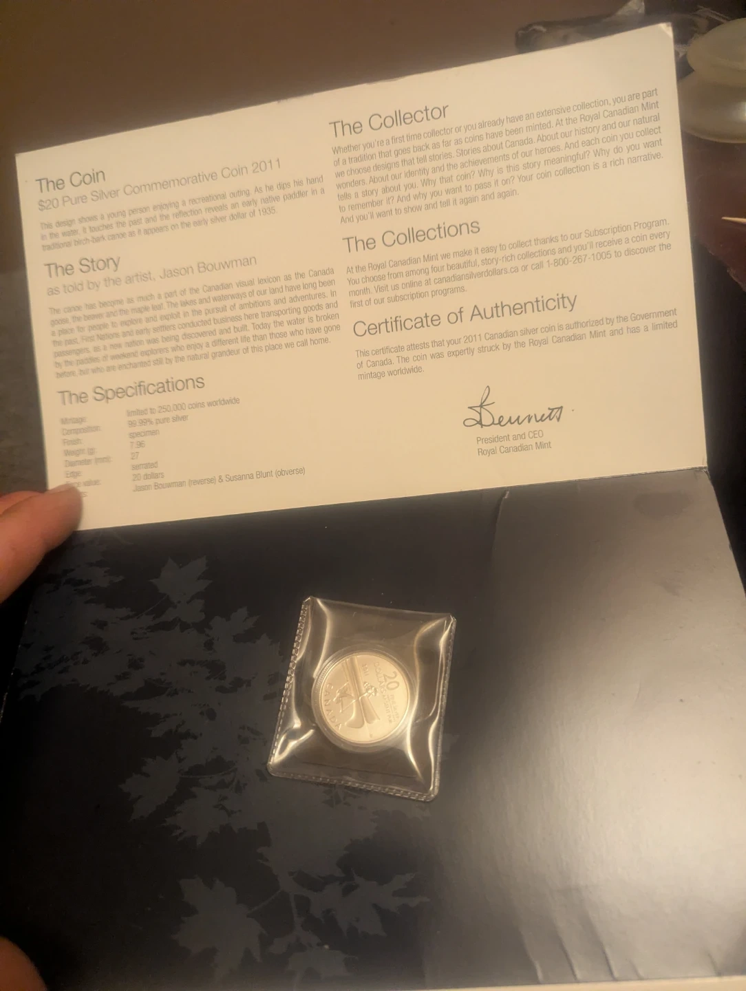 2011 $20 Pure Silver Canoe Trip Commemorative Coin