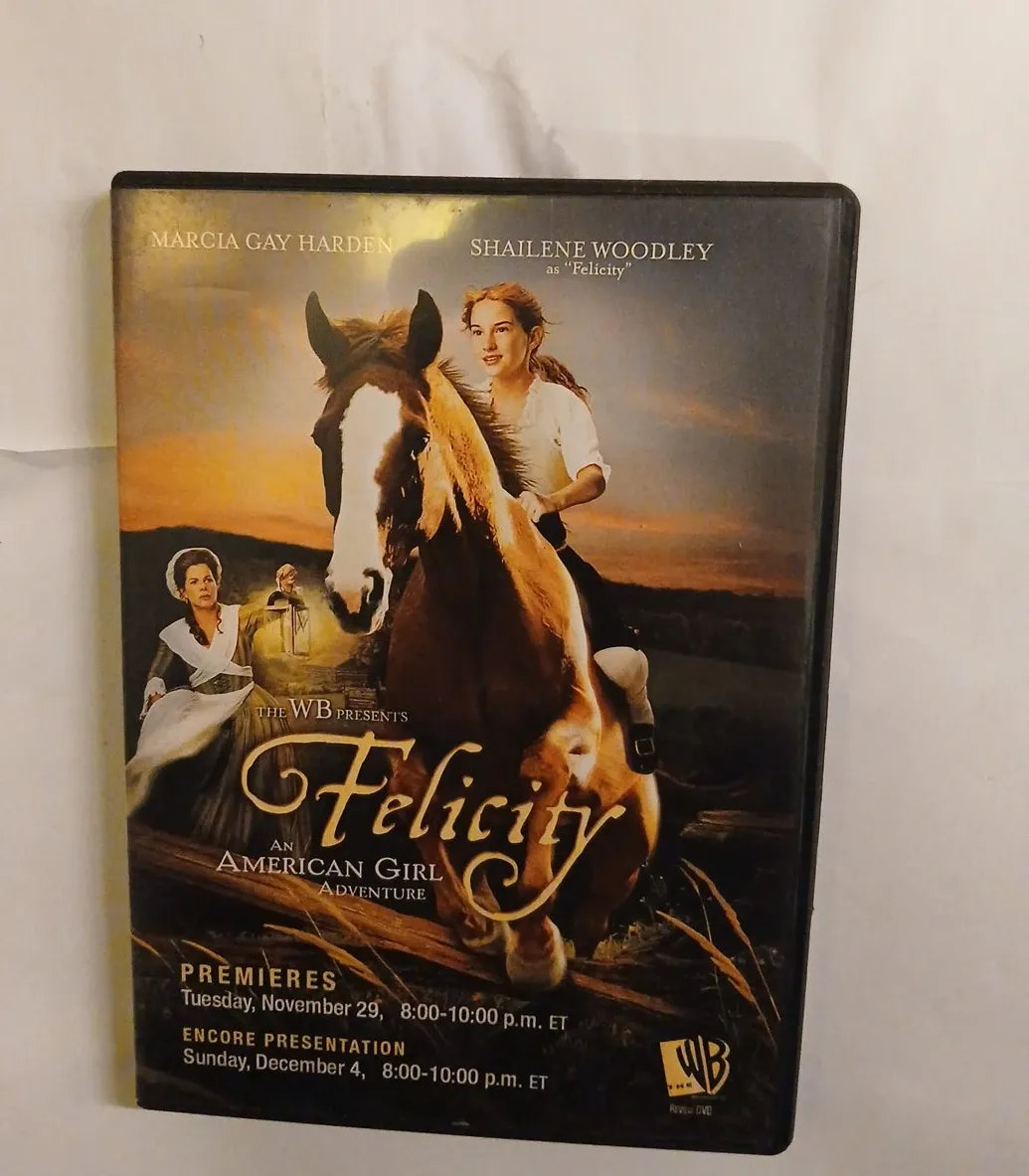 This DVD features Felicity: An American Girl Adventure. It stars Shailene Woodley and Marcia Gay Harden. The movie premiered on Tuesday, November 29, with an encore presentation on Sunday, December 4. This is a WB Television DVD.