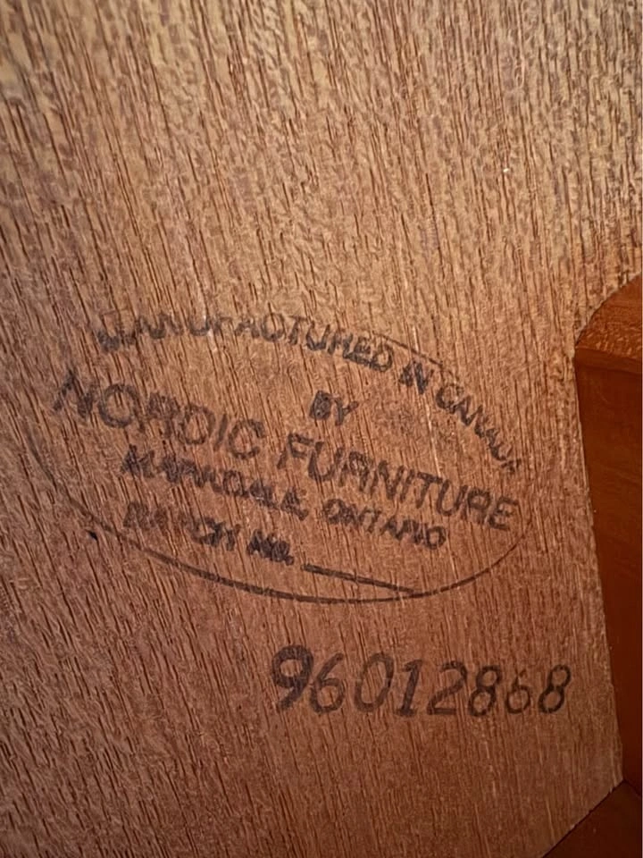 Elegant Mid-Century Modern teak side table, Danish modern design by NORDIC furniture. Please, see pictures for condition and measurements. Iconic Minimalist design. It will be a beautiful addition to your space. A few minor signs of wear (stains & marks as seen in the 9th photo) Priced accordingly. Easy project. It’s really heavy and solid. Pickup only in Burlington. (Pinedale Ave) Sorry, NO delivery. Priced to sell and FIRM AT $140. Thank you.