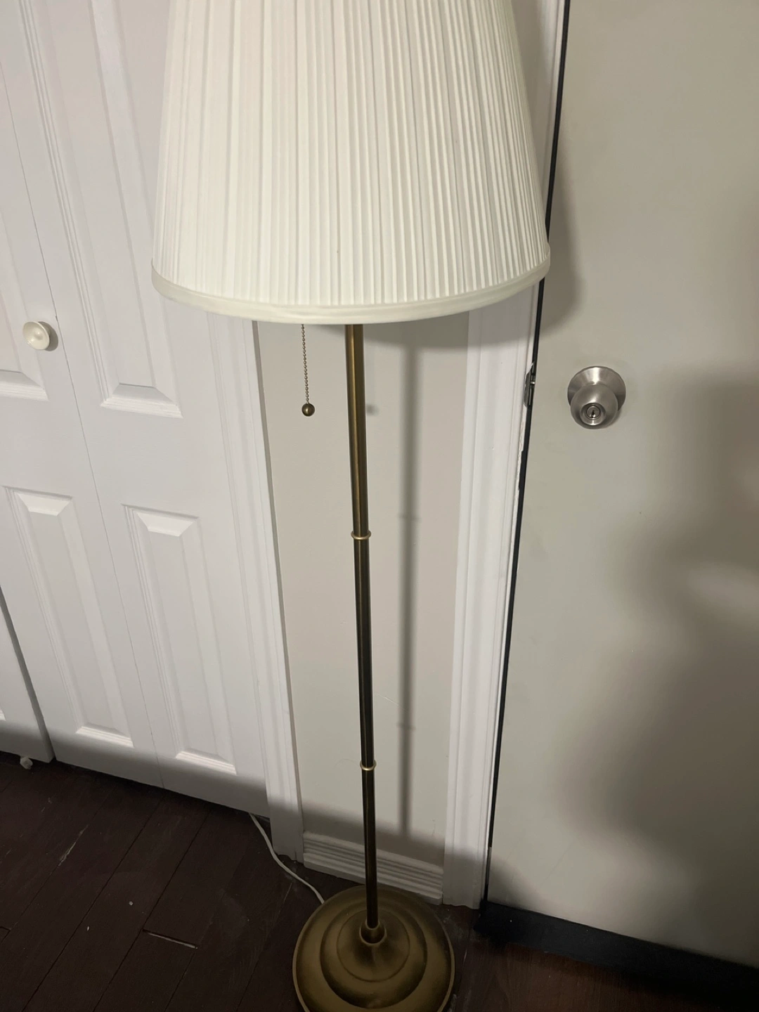 Selling a big and high quality floor lamp with a gold finish and a white shade. It's in great condition and would look lovely in any room! The lamp has a classic vintage design and provides a warm, ambient light. Perfect for adding a touch of elegance to your home decor. It comes with a light bulb and ready to use. We have several lamps everywhere so very rarely used. 35 cash and pick up at Thornhill. Originally purchased it for 80+ tax.
