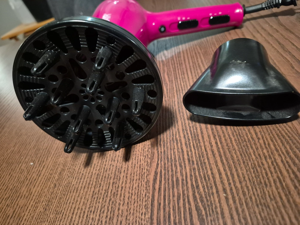 Pink Conair hair dryer. Multiple heat and speed settings. Includes concentrator and diffuser attachments. Used but in good condition. asking 30 obo
