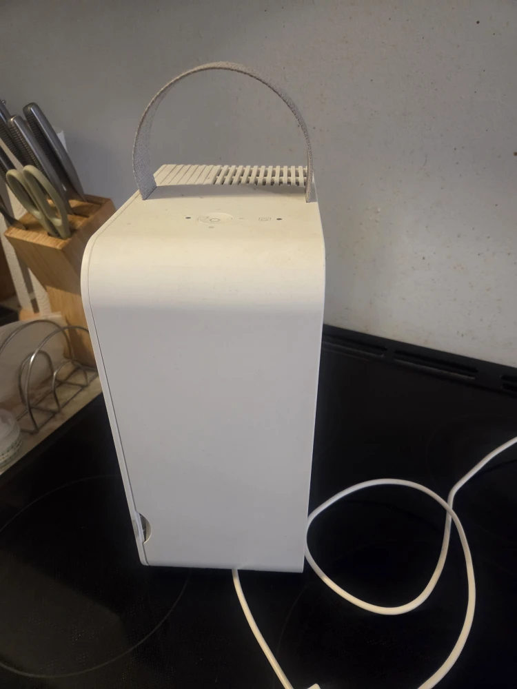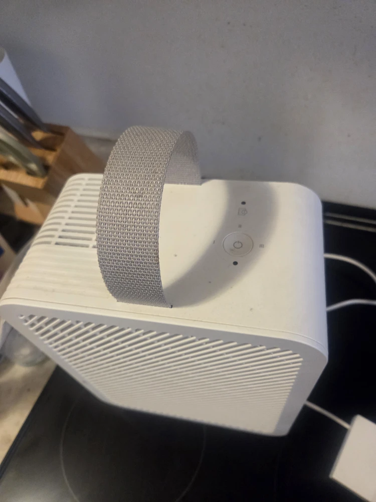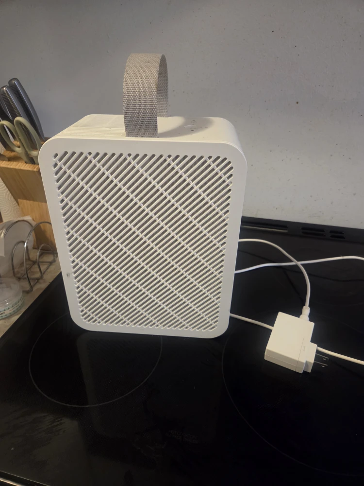 Selling a white air purifier, perfect for keeping your air clean and fresh! It comes with a charger and has a convenient handle for easy moving around your home. The filter is also easily accessible for cleaning or replacement