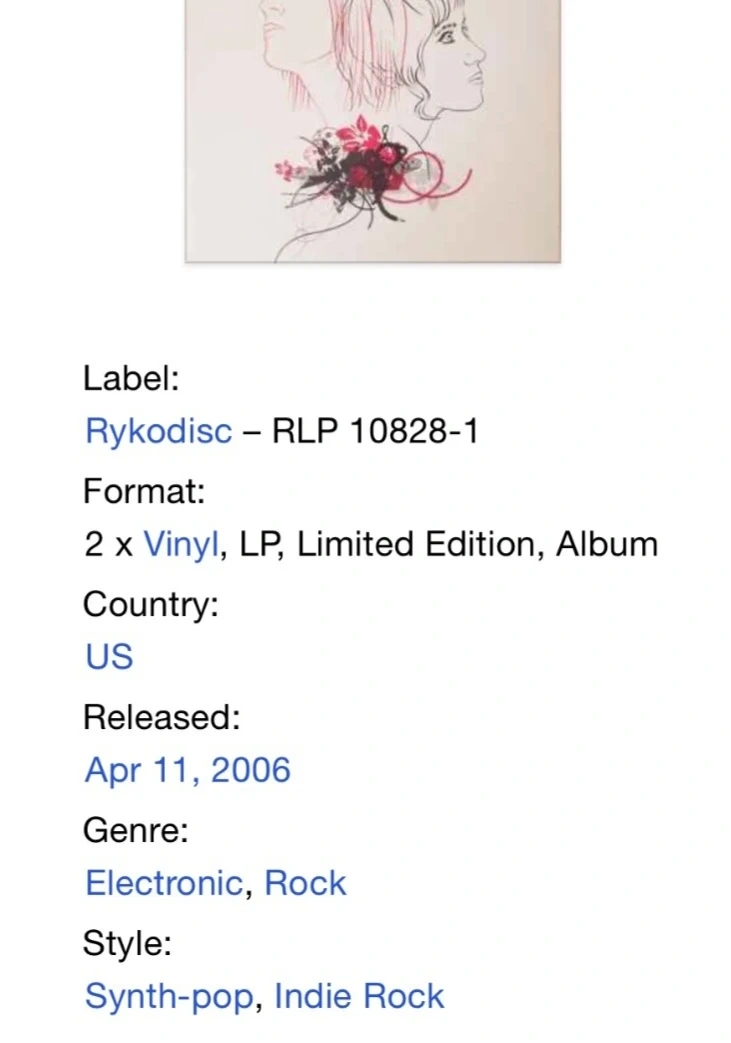 Includes a bonus LP with exclusive unreleased remixes plus UK B-sides. Released on 180 gram vinyl by Rykodisc in the USA in 2006.
