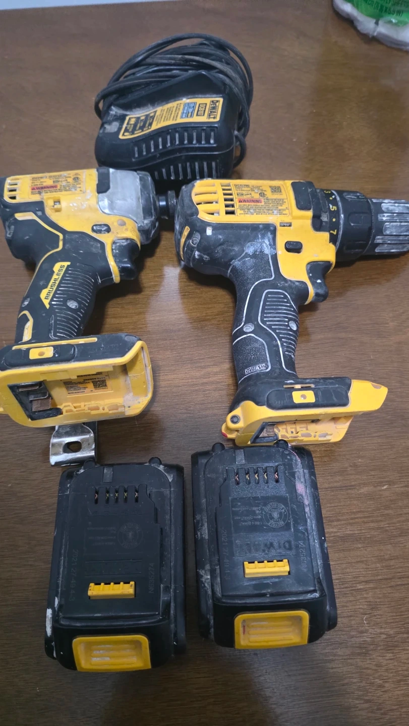 This DeWalt combo kit includes a cordless drill and an impact driver. It comes with a charger and two batteries. These tools are great for various DIY and professional projects!
