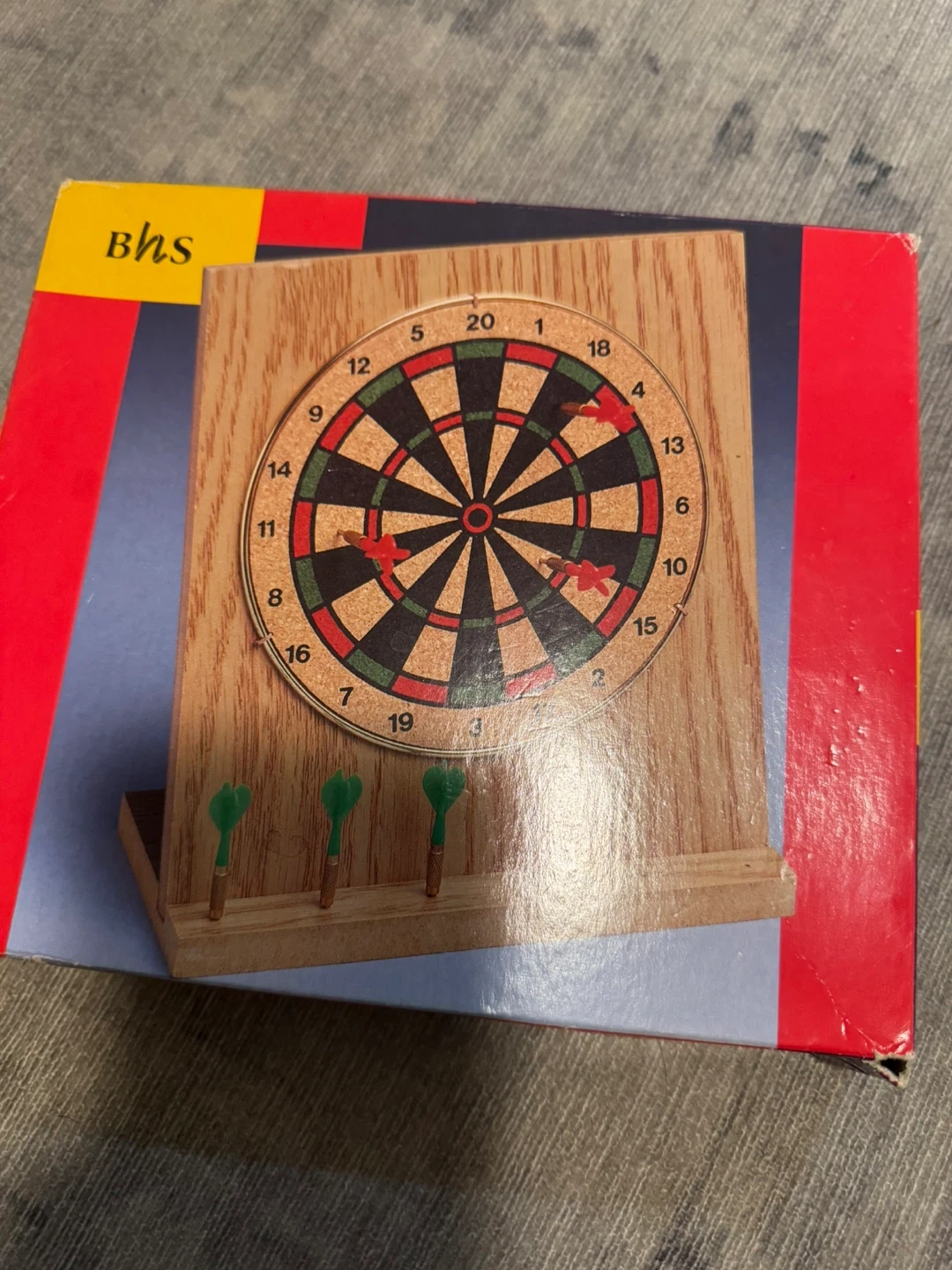 Bring the fun of the pub to your office with this Desk Darts set! It's a miniature dartboard game perfect for taking a quick break or adding a bit of entertainment to your workspace. The set comes complete with a small dartboard and darts, all in its original box
