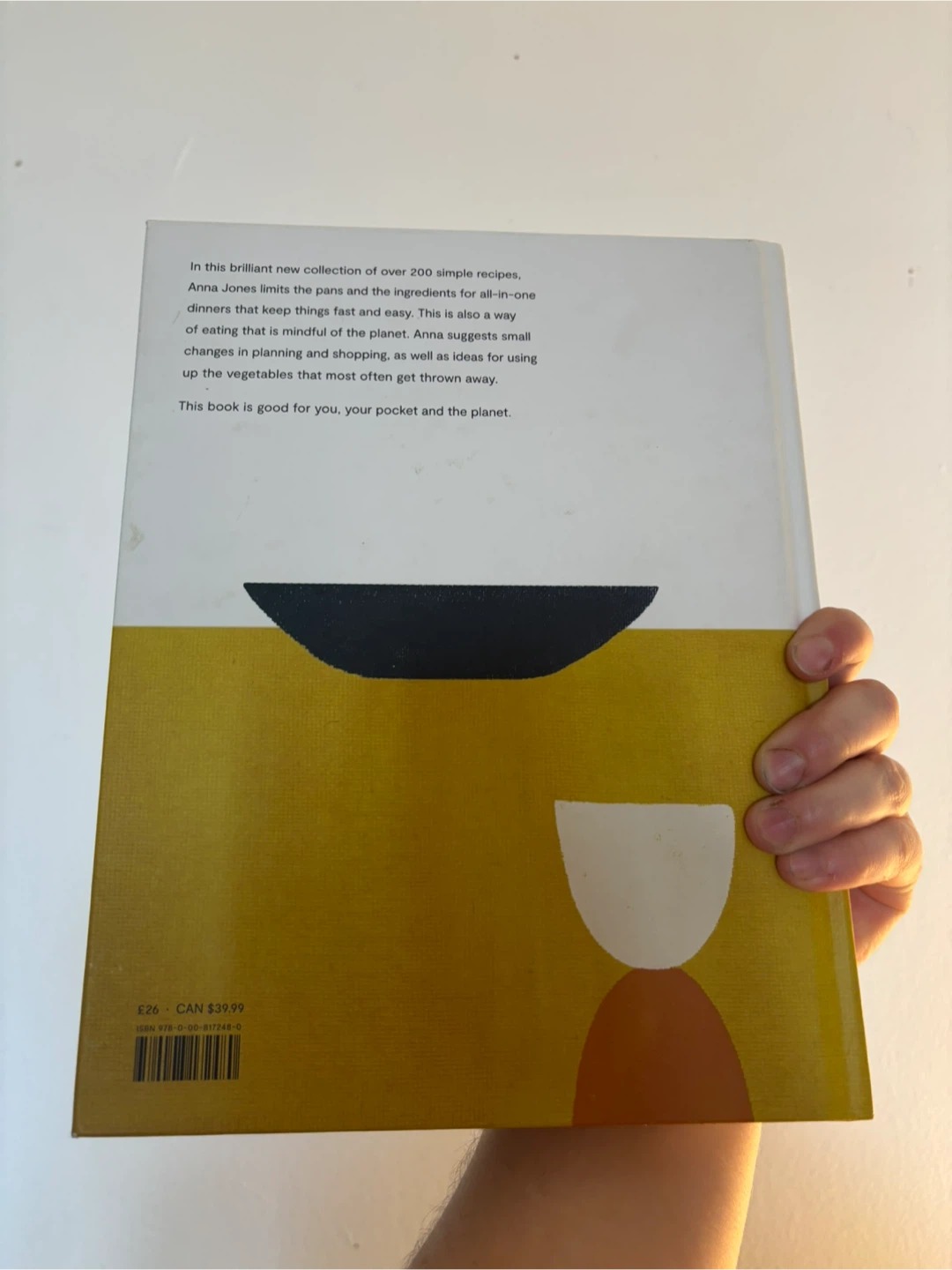 This is the 'One Pot, Pan, Planet' cookbook by Anna Jones. It's a collection of over 200 simple recipes that limit prep and ingredients for all-in-one dinners. The book suggests ideas for using up vegetables that most often get thrown away.