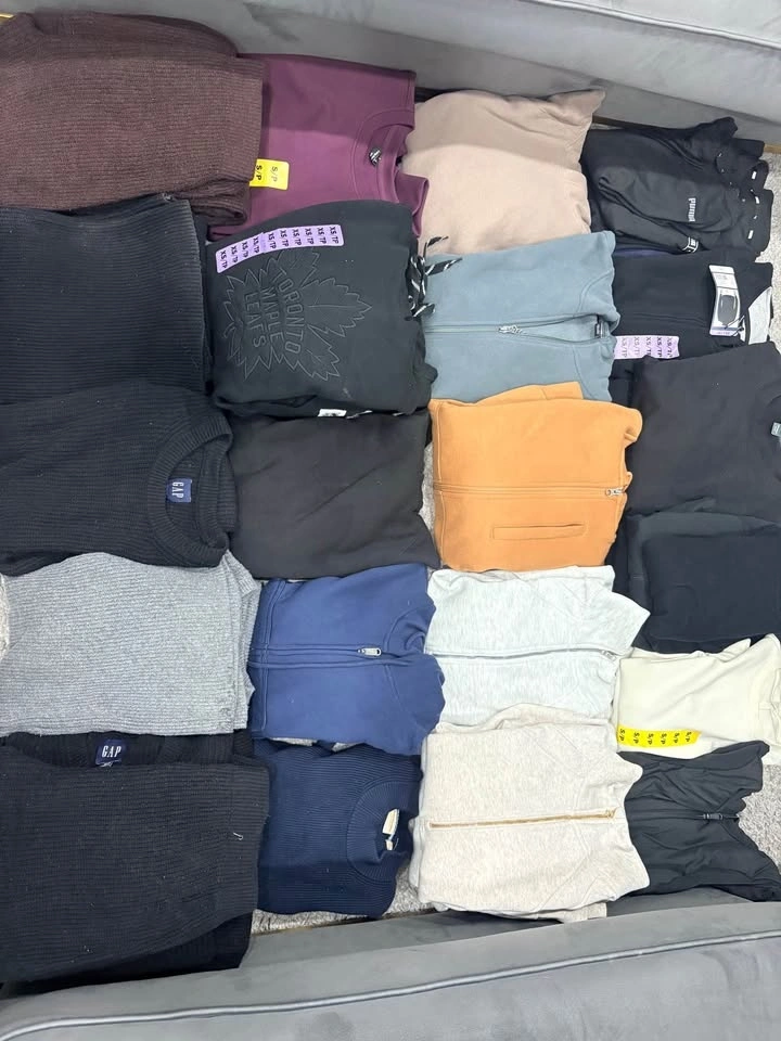 100% genuine clothing from a North American supplier. Men's and women's sweatshirts, hoodies, and shirts available in sizes XS-XXXL. Tops and t-shirts are $4-$5. Winter tops, sweatshirts, and hoodies are $5-$10. Shirts are $8-$15. Pants and sweatpants are $5-$8. More clothing and electronics are available; please check my other ads. Pickup is in the Huron area, Kitchener, opposite Huron Heights Secondary School.