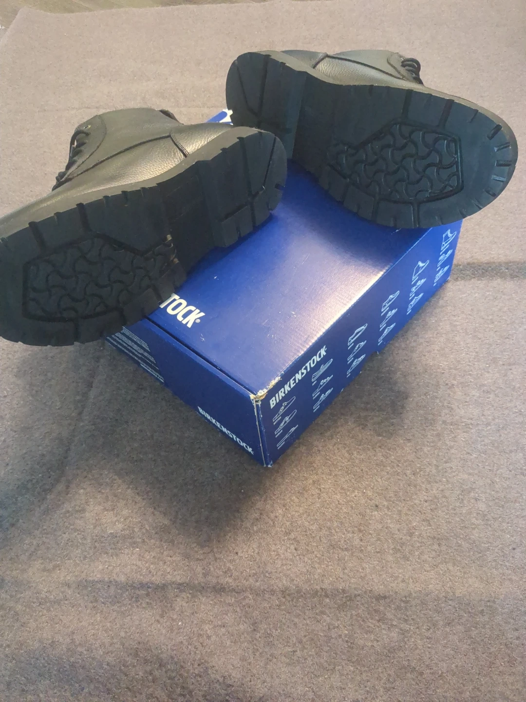 These are Birkenstock black leather lace-up boots. They feature a durable sole and comfortable construction. These boots are great for everyday wear. Size 44 US 11