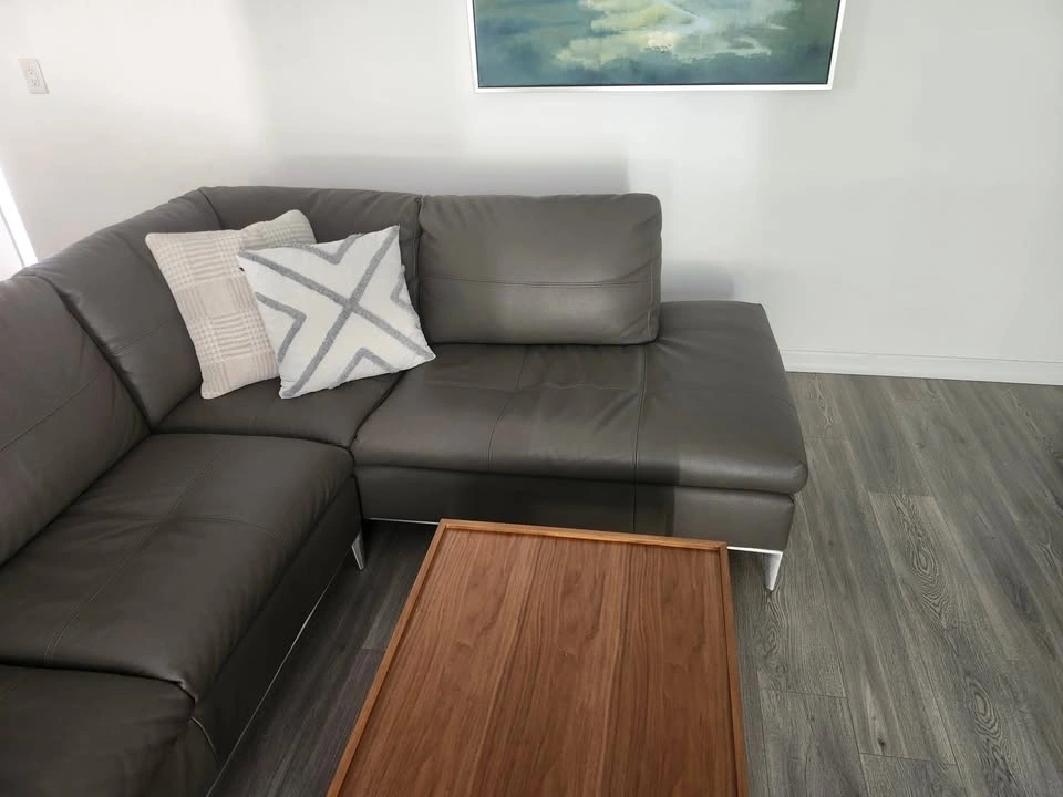 Purchased 3 years ago. Material: 50% polyester, 44% polyurethane, 6% cotton (Leatherette). Size: 280 x 200 cm. Pickup near Mundy Park, Cape Horn area, Coquitlam.