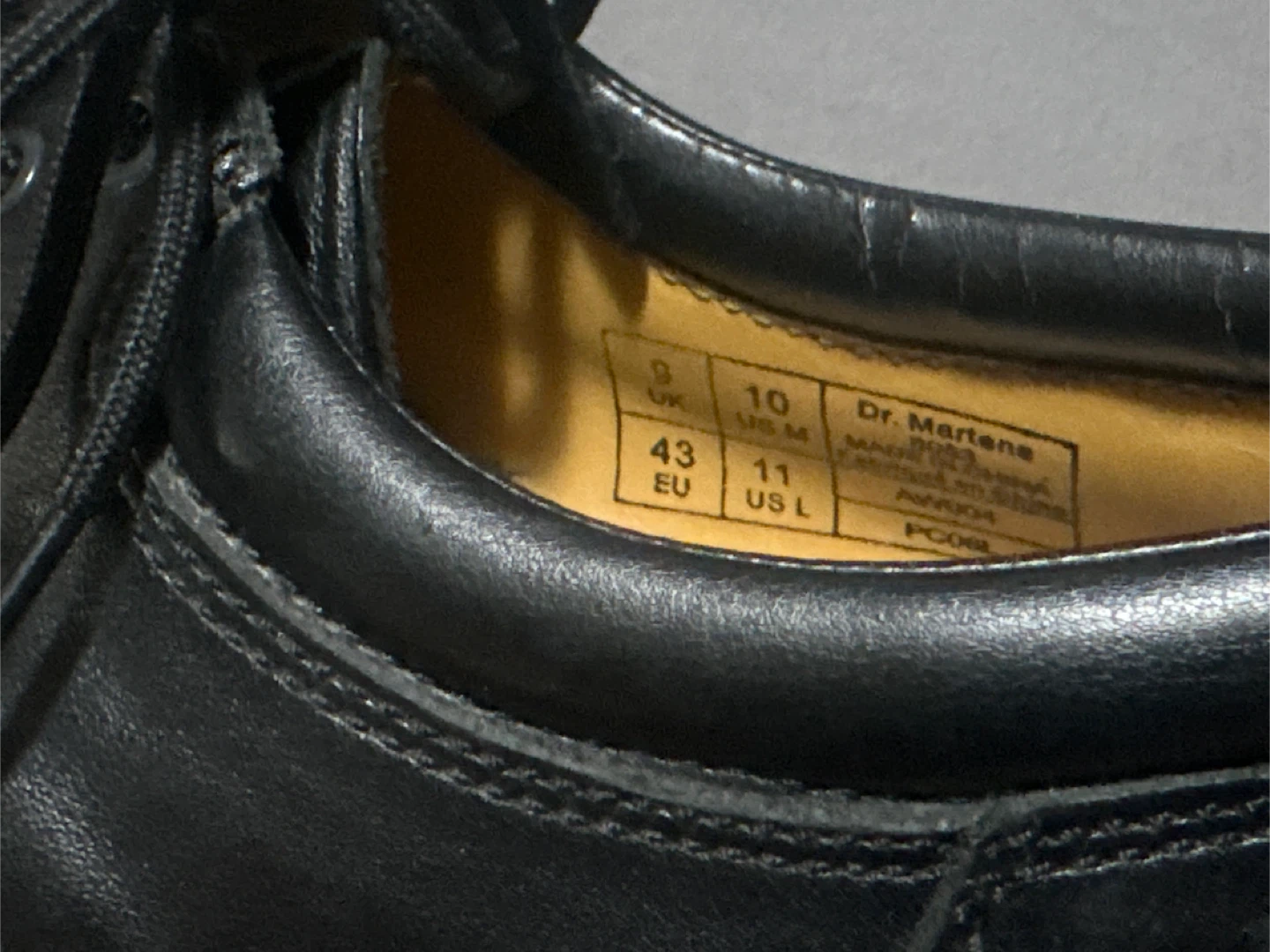 Classic black leather Oxford shoes from Dr. Martens. These shoes feature a durable sole and comfortable interior. Size 10 Men’s US.