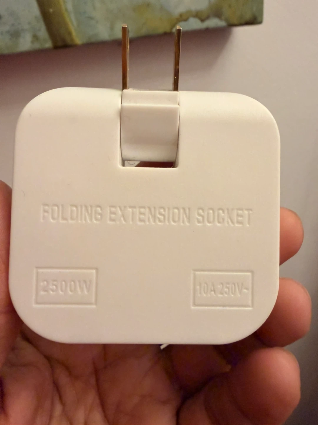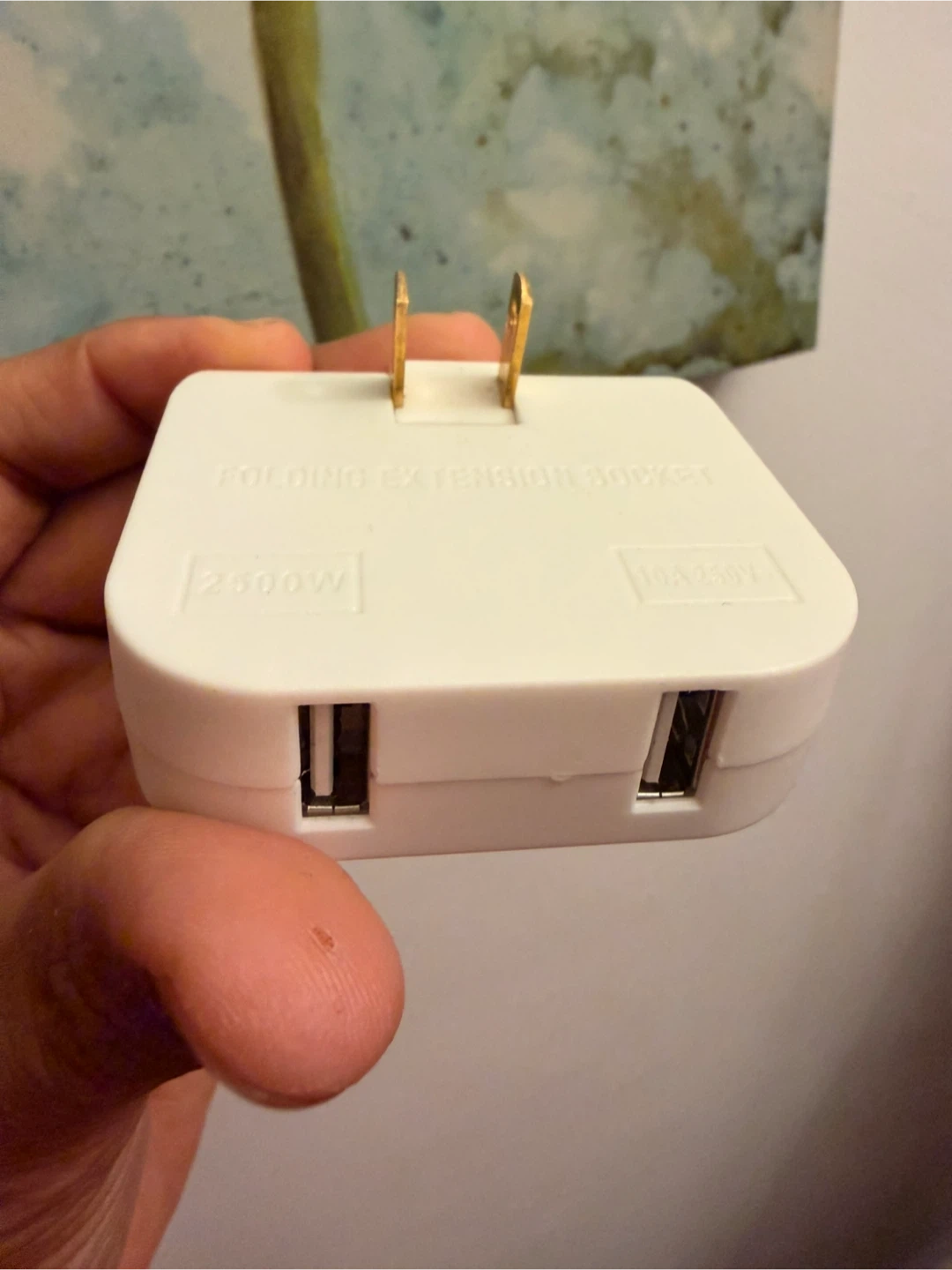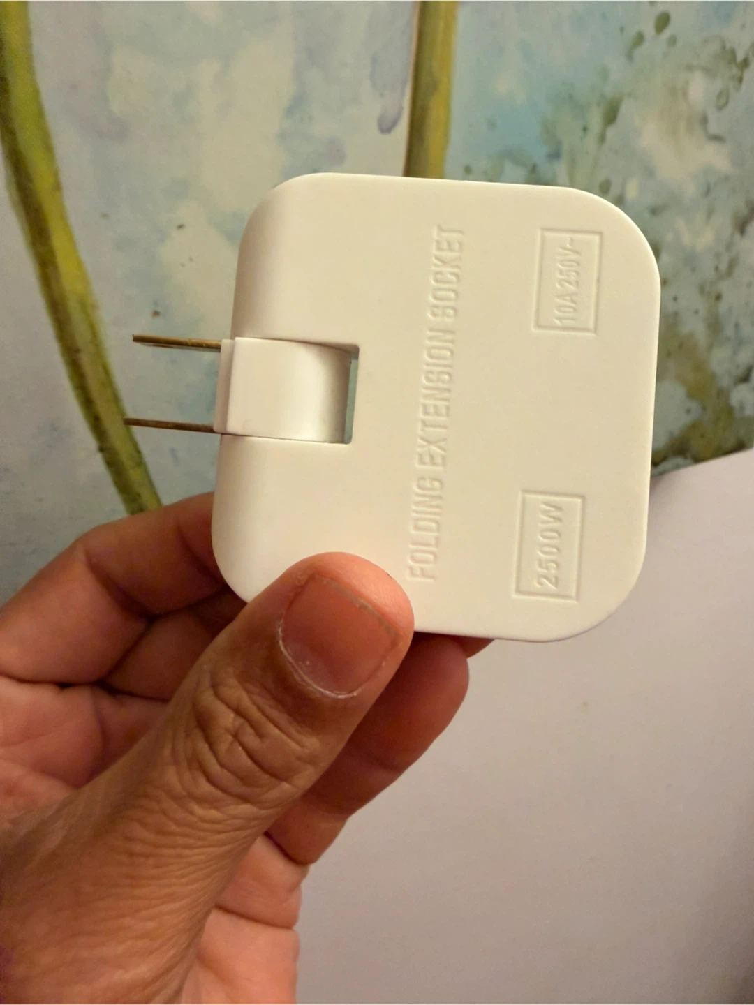 This is a white folding extension socket with two USB ports. It supports 2500W and 10A 250V. It's great for travel or home use when you need extra outlets and USB charging. The folding plug makes it compact for storage!