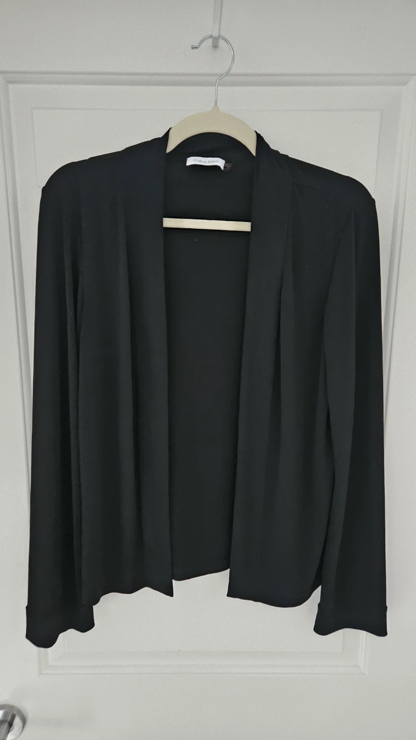 Black Calvin Klein cardigan, in size medium. Made from a lightweight fabric, it's perfect for layering over outfits.