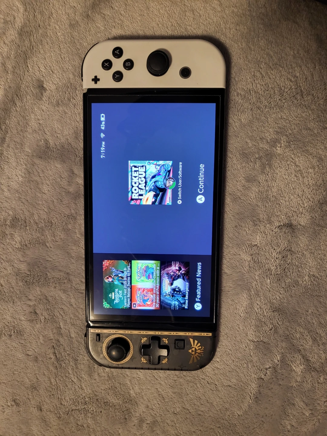 Nintendo Switch OLED Model console, white and black. Includes a grey protective travel case. This handheld gaming system is ready for adventures!