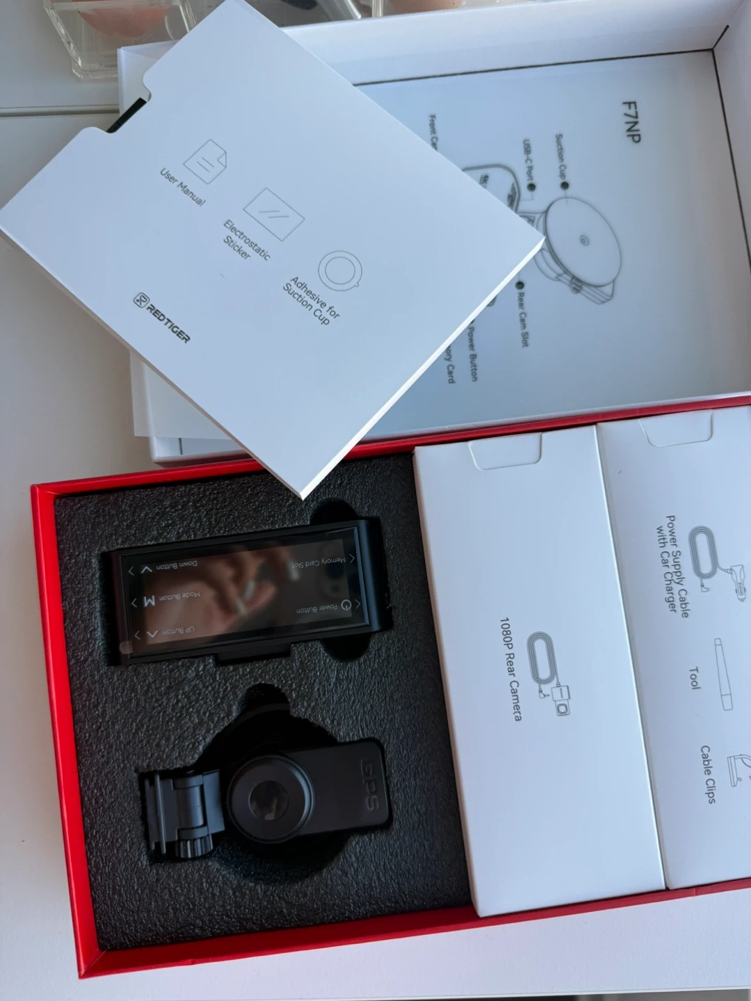 RED TIGER F7NP dash cam with 4K Ultra Clear recording. It's Wi-Fi enabled with APP control and GPS tracking capabilities. This unit includes a 1080P rear camera and all necessary cables and tools for installation.
