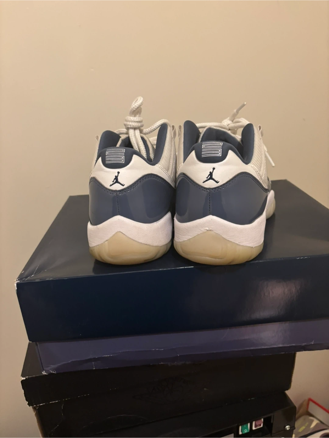 Selling a pair of Jordan 11 Retro Low Diffused blue sneakers. These are in great condition and come with the original box. Perfect for any sneakerhead!