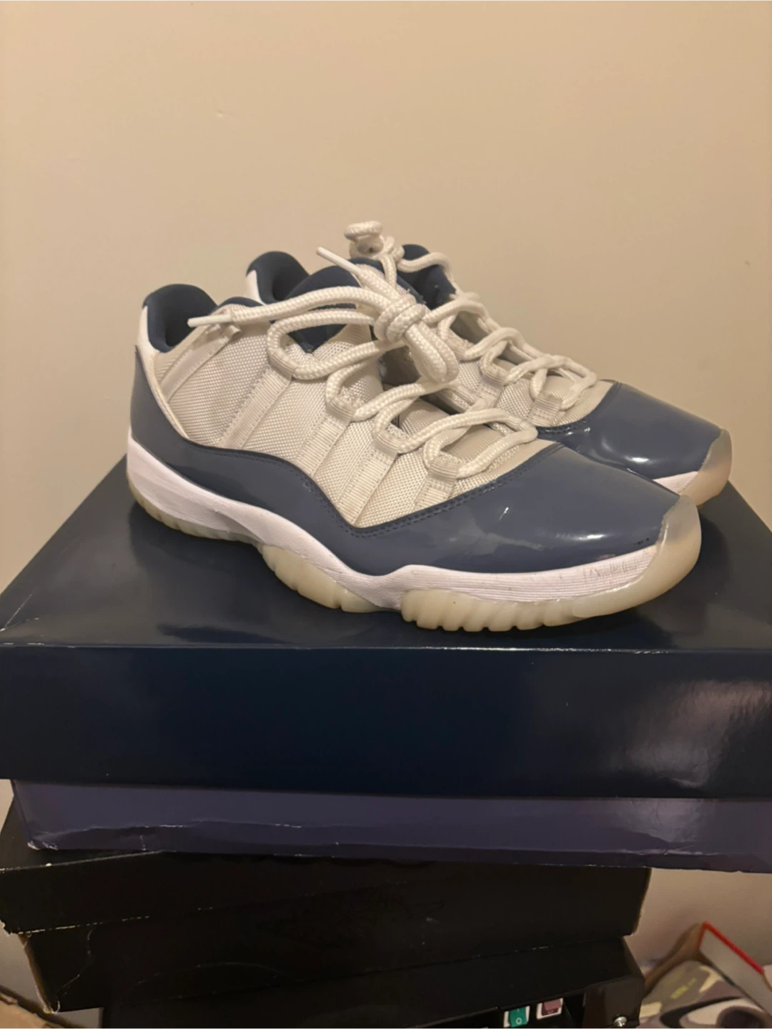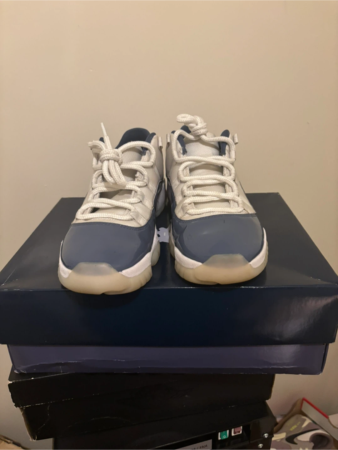 Selling a pair of Jordan 11 Retro Low Diffused blue sneakers. These are in great condition and come with the original box. Perfect for any sneakerhead!