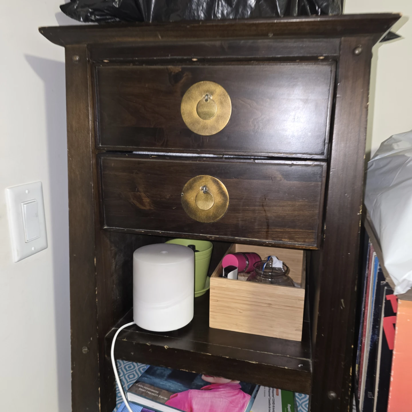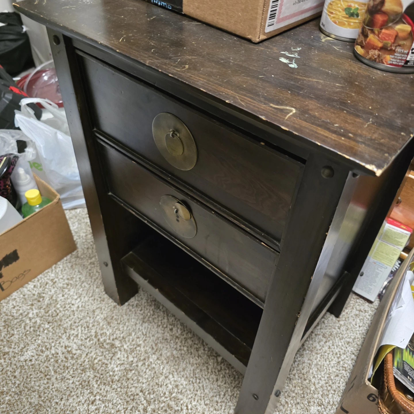1 / 31 / 3Buy & SellDark Wood Nightstand with Drawer and ShelfDark Wood Nightstand with Drawer and Shelf$10This dark wood nightstand features two drawers and an open shelf. It has brass-coloured pulls. Shows some wear on the top surface.ConditionGoodWHERE TO MEETCentury ParkView MapSELLERverifiedLucyErmineskin18111 reviews0 chats·1 favorites·42 viewsSEND CHAT TO SELLERHi Lucy! I’m interested in your listing.Hi Lucy! I’m interested in your listing.Get the Karrot app to chatSign In to chat