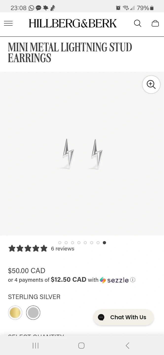 Hillberg & Berk Silver Lightening Stud Earrings, Buffing Cloth