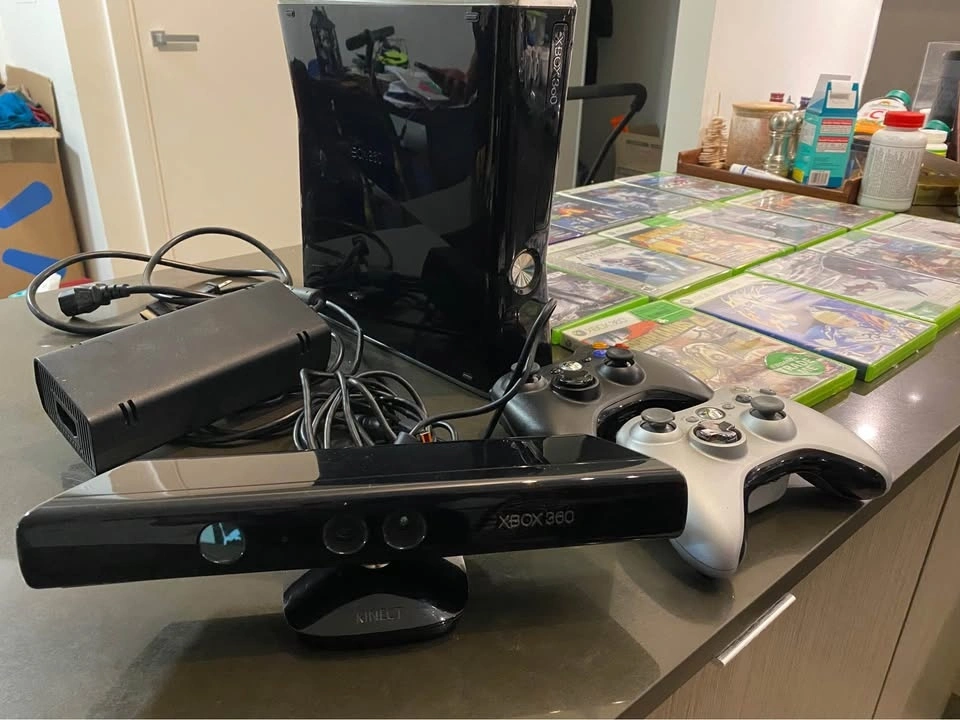 Xbox 360 Console + Kinect, 2 Controllers & Games