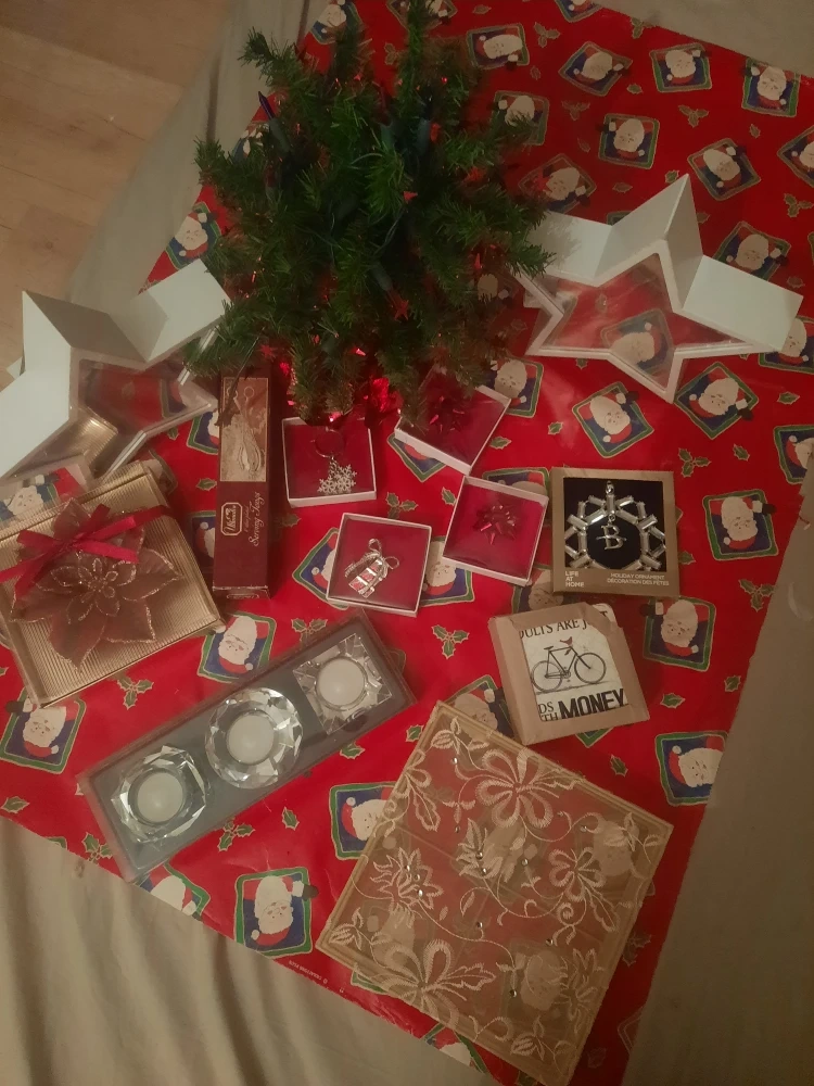 Here's a small Table/Desk-top Christmas tree, all decorated and ready to go! It's perfect for adding a bit of festive cheer to a small space, like an apartment or office. It's in great condition and comes with the lights and sparkles already on it. From a Clean Pet Free & Smoke Free Home DM for Pickup Near Steeles Ave W & Mavis Rd Moving Sale...I have other items to browse. Some Great Gift Ideas! Come create a bundle and let's make a deal! Thank-you for Checking.