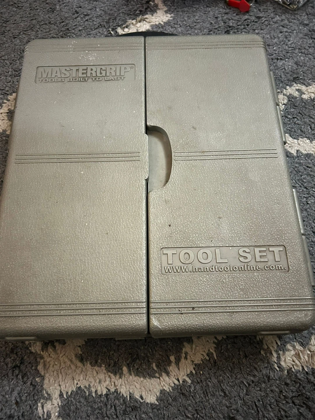 This is a Standard socket wrench set with various sizes of sockets and wrenches. Includes a ratchet handle and extension bars. Set comes in a durable carrying case.