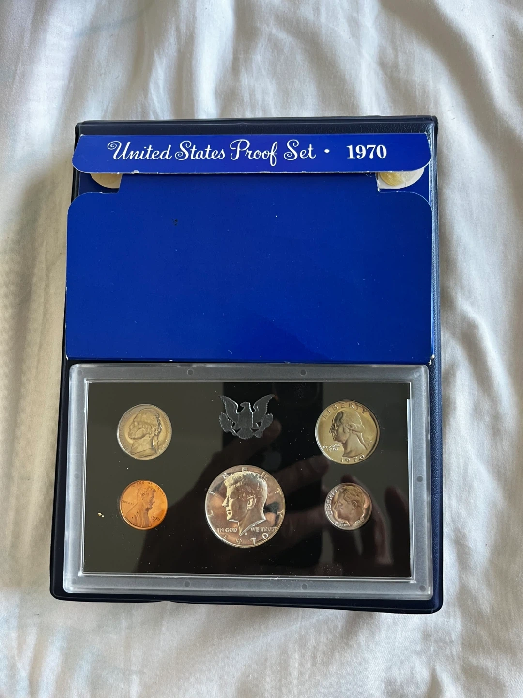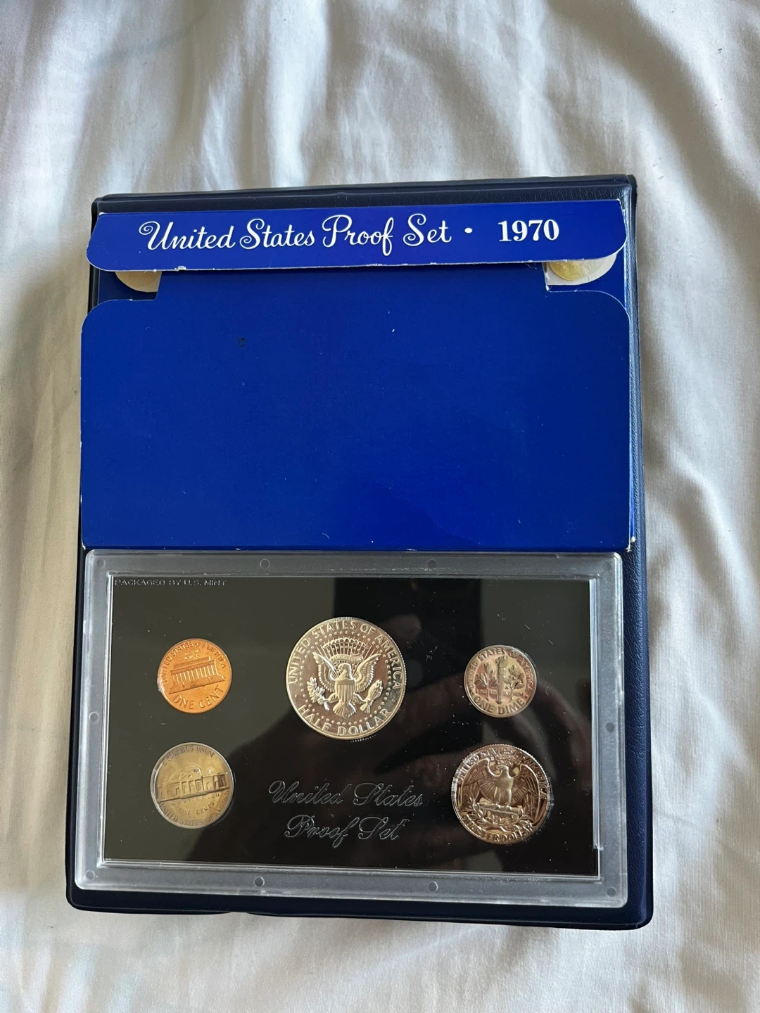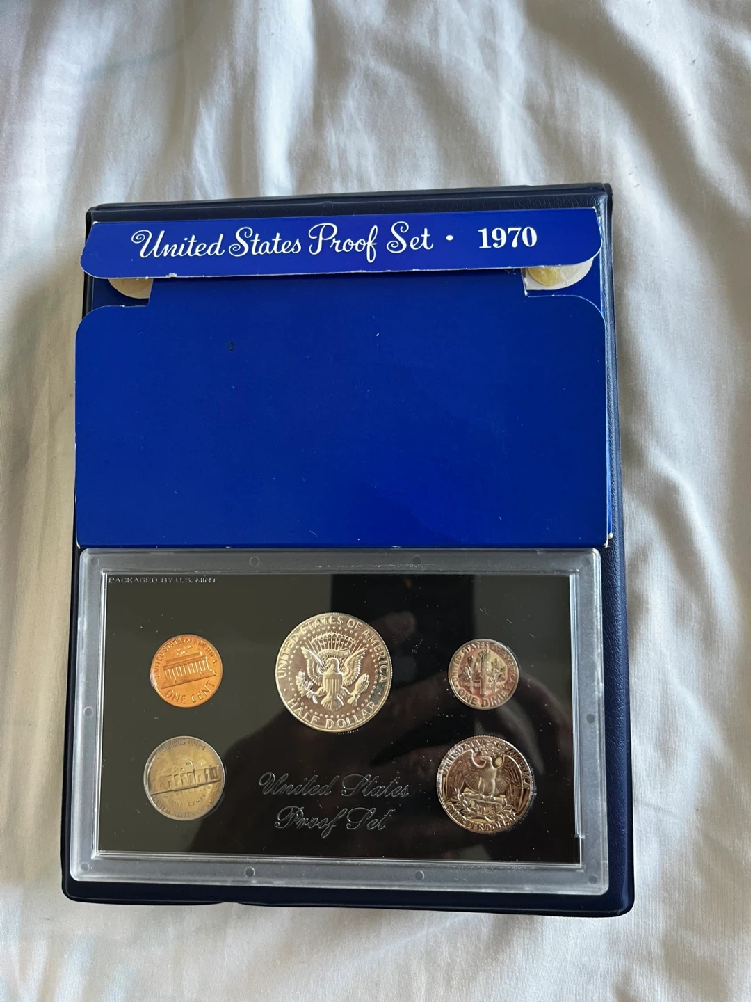 Buy & SellMint Condition 1970 United States Proof SetMint Condition 1970 United States Proof Set$40This is the official United States Mint 1970 Proof Set. It comes in its original blue packaging. A great addition for any coin collector!ConditionNewWHERE TO MEETCheck LocationView MapSELLERverifiedMustafaMarine Hamilton37036 reviews0 chats·1 favorites·10 viewsSEND CHAT TO SELLERHi Mustafa! I’m interested in your listing.Hi Mustafa! I’m interested in your listing.Get the Karrot app to chatSign In to chat