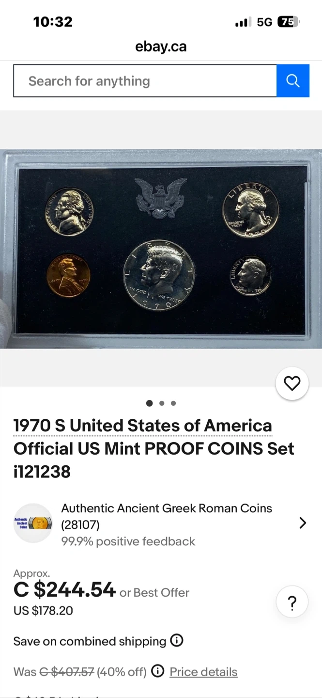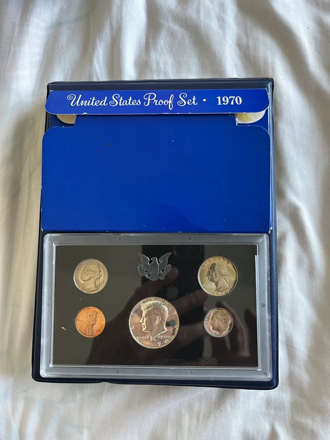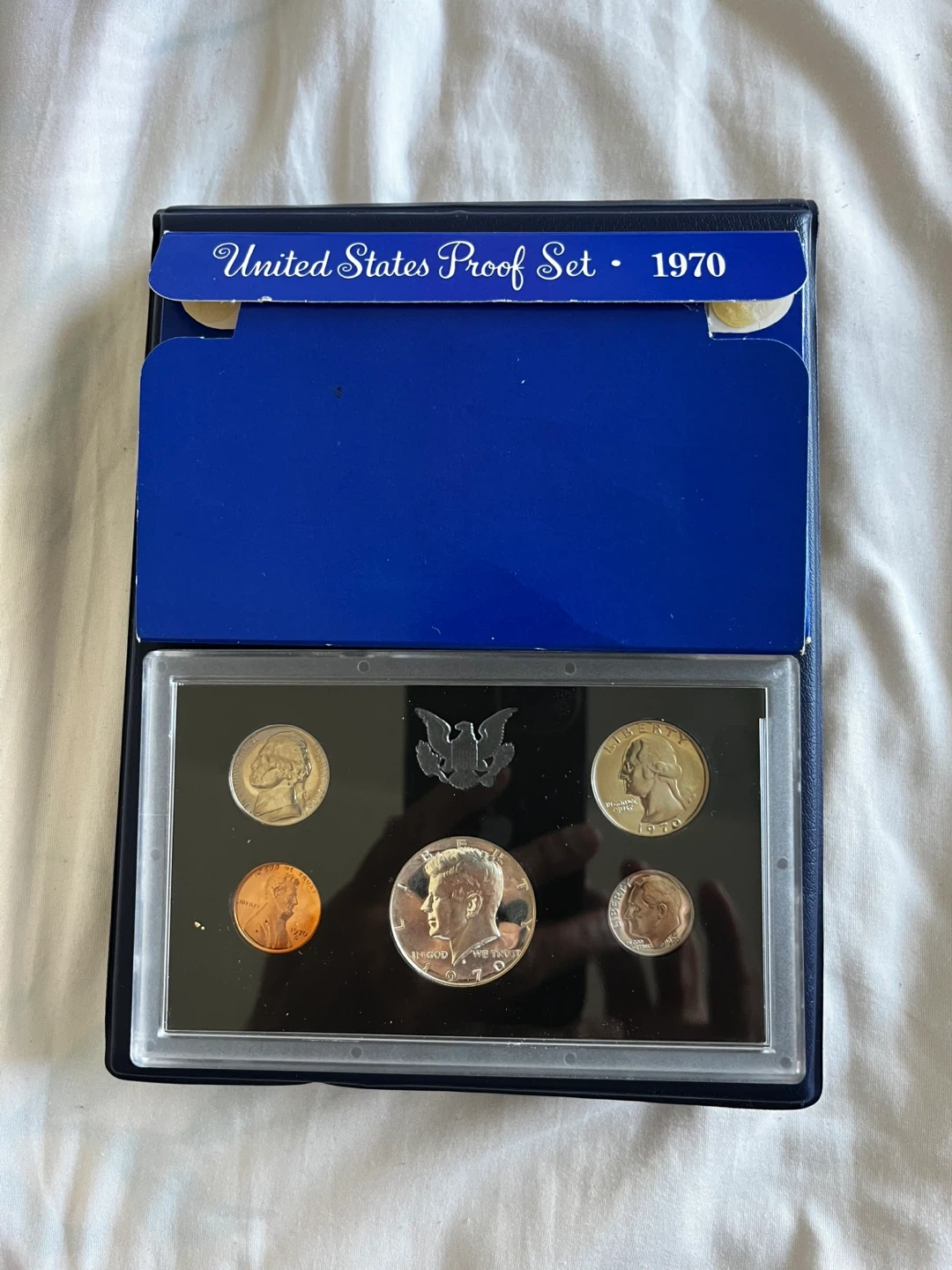 Buy & SellMint Condition 1970 United States Proof SetMint Condition 1970 United States Proof Set$40This is the official United States Mint 1970 Proof Set. It comes in its original blue packaging. A great addition for any coin collector!ConditionNewWHERE TO MEETCheck LocationView MapSELLERverifiedMustafaMarine Hamilton37036 reviews0 chats·1 favorites·10 viewsSEND CHAT TO SELLERHi Mustafa! I’m interested in your listing.Hi Mustafa! I’m interested in your listing.Get the Karrot app to chatSign In to chat