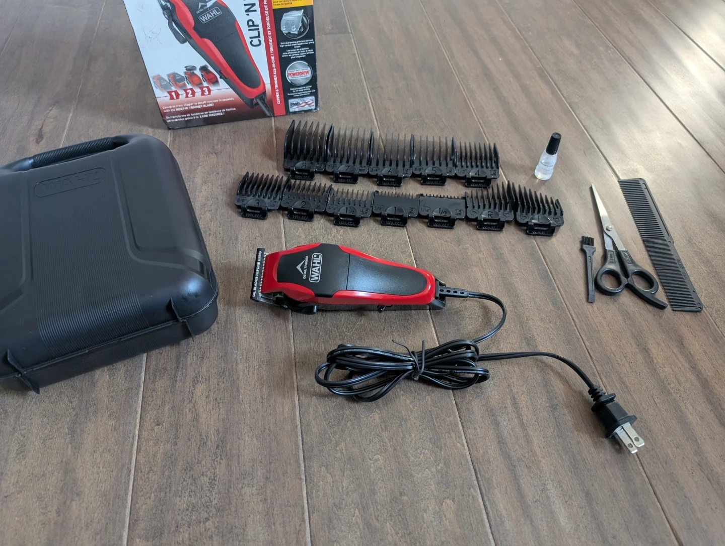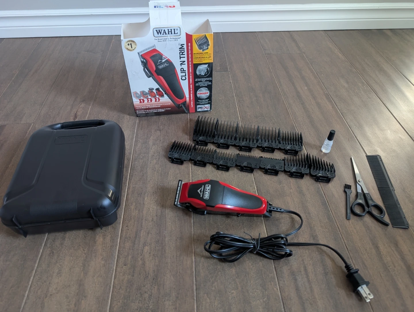 Brand new Wahl clip ‘n trim 20 piece hair cutting kit for sale. 12 smooth cut attachment guards, 7’ foot cord, self sharpening blades, built in trimmer, powerdrive heavy duty motor, $45 FIRM.
