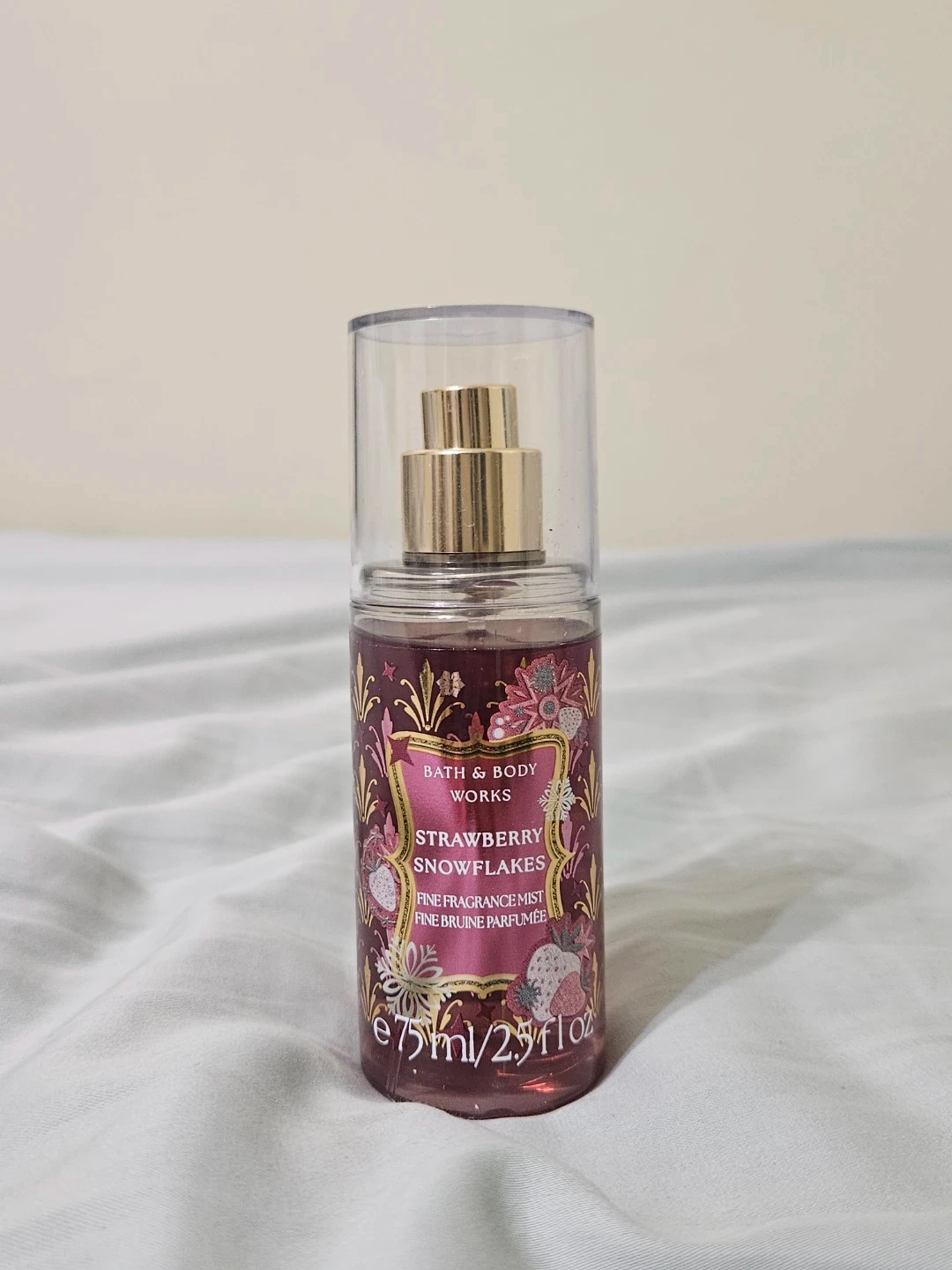 Bath & Body Works Strawberry Snowflakes Fine Fragrance Mist. This mist comes in a 75ml bottle. It's a fine fragrance mist.