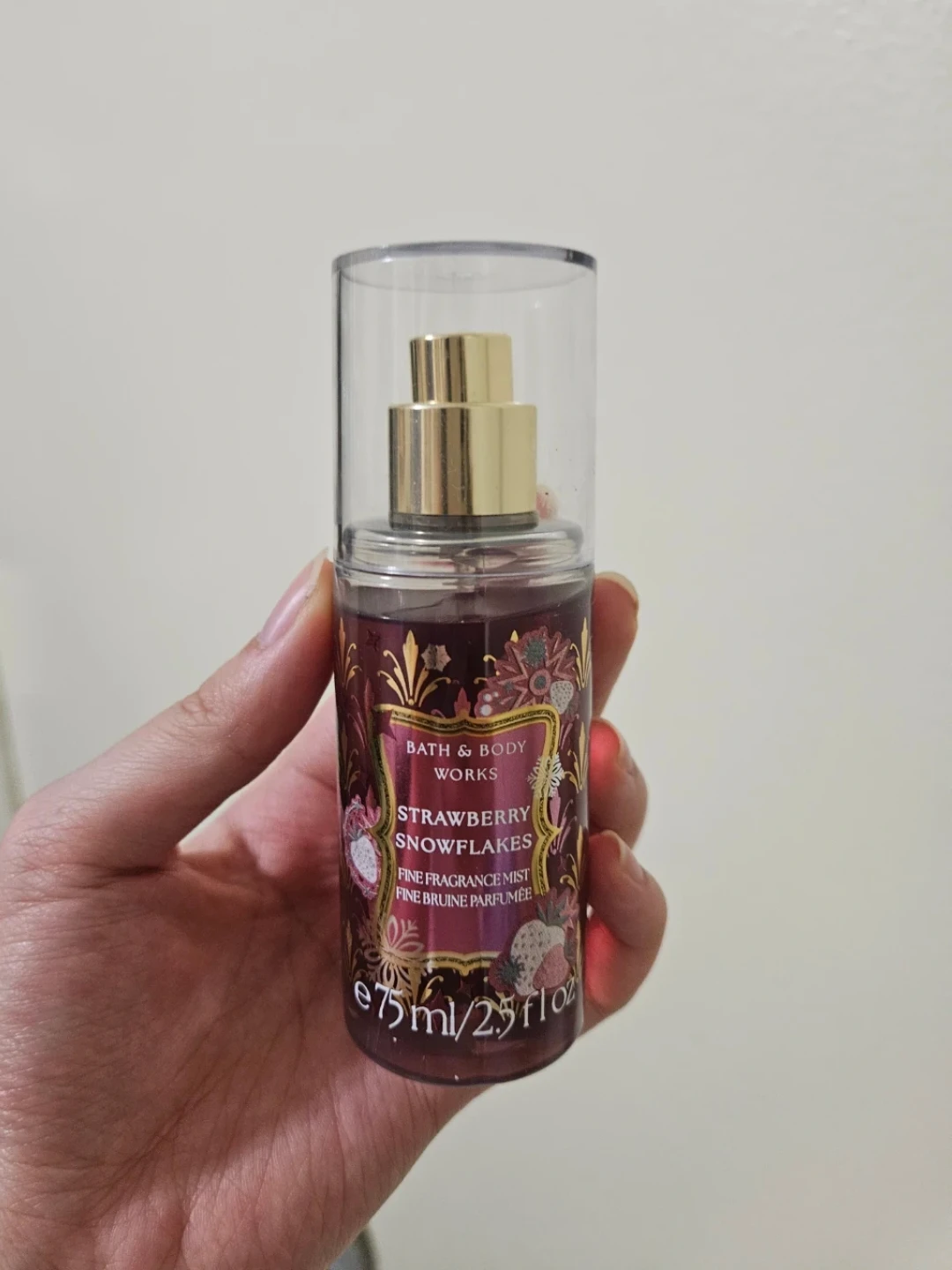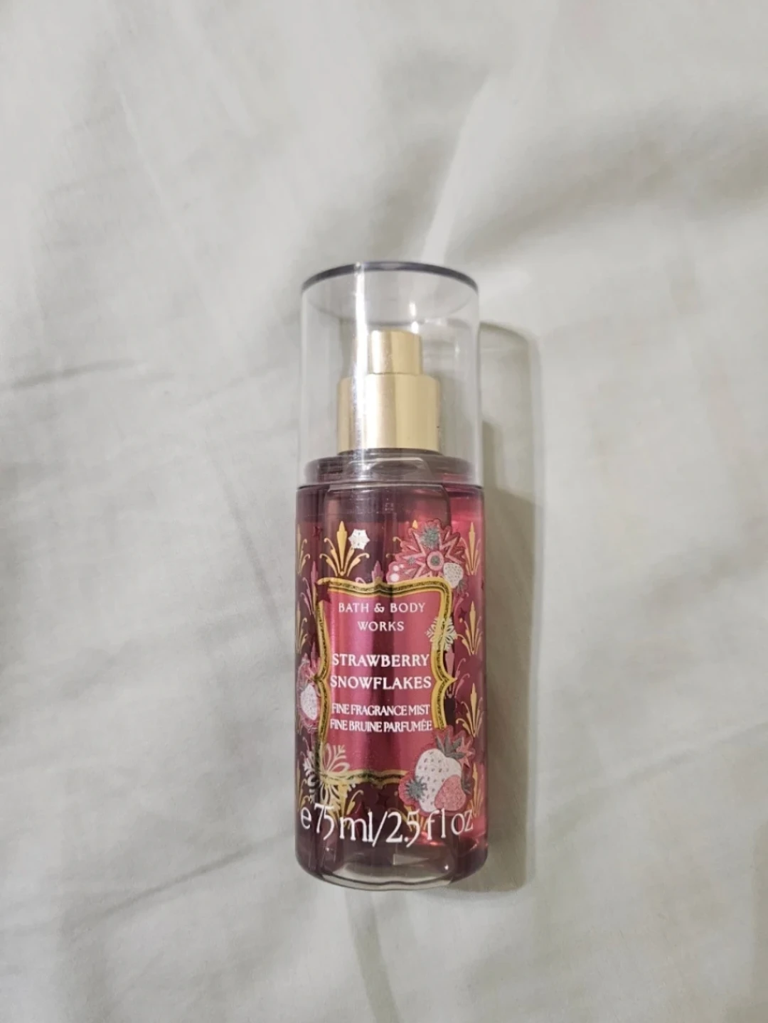 Bath & Body Works Strawberry Snowflakes Fine Fragrance Mist. This mist comes in a 75ml bottle. It's a fine fragrance mist.