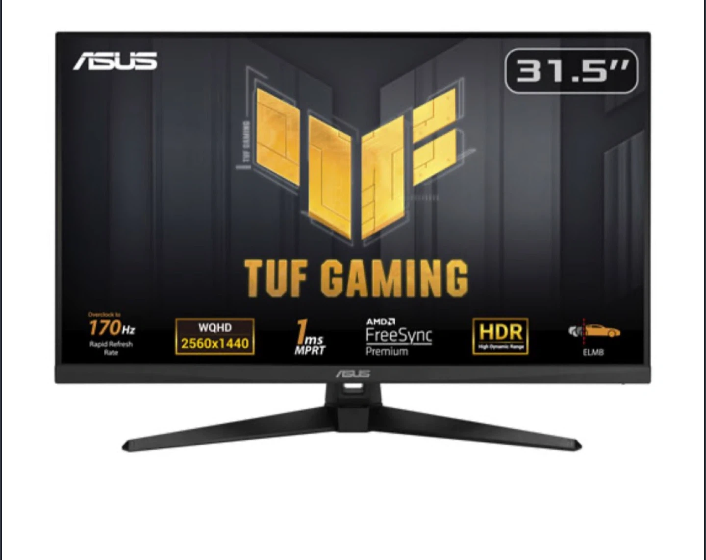ASUS TUF Gaming monitor with a 31.5" WQHD display. It boasts a rapid 170Hz refresh rate and 1ms MPRT for smooth visuals. Features AMD FreeSync Premium and HDR support.