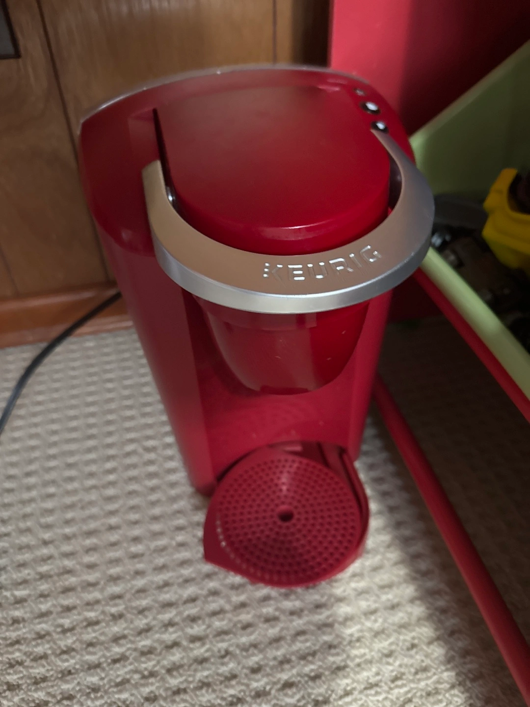 Compact red Keurig coffee maker. Single-serve. Good condition.