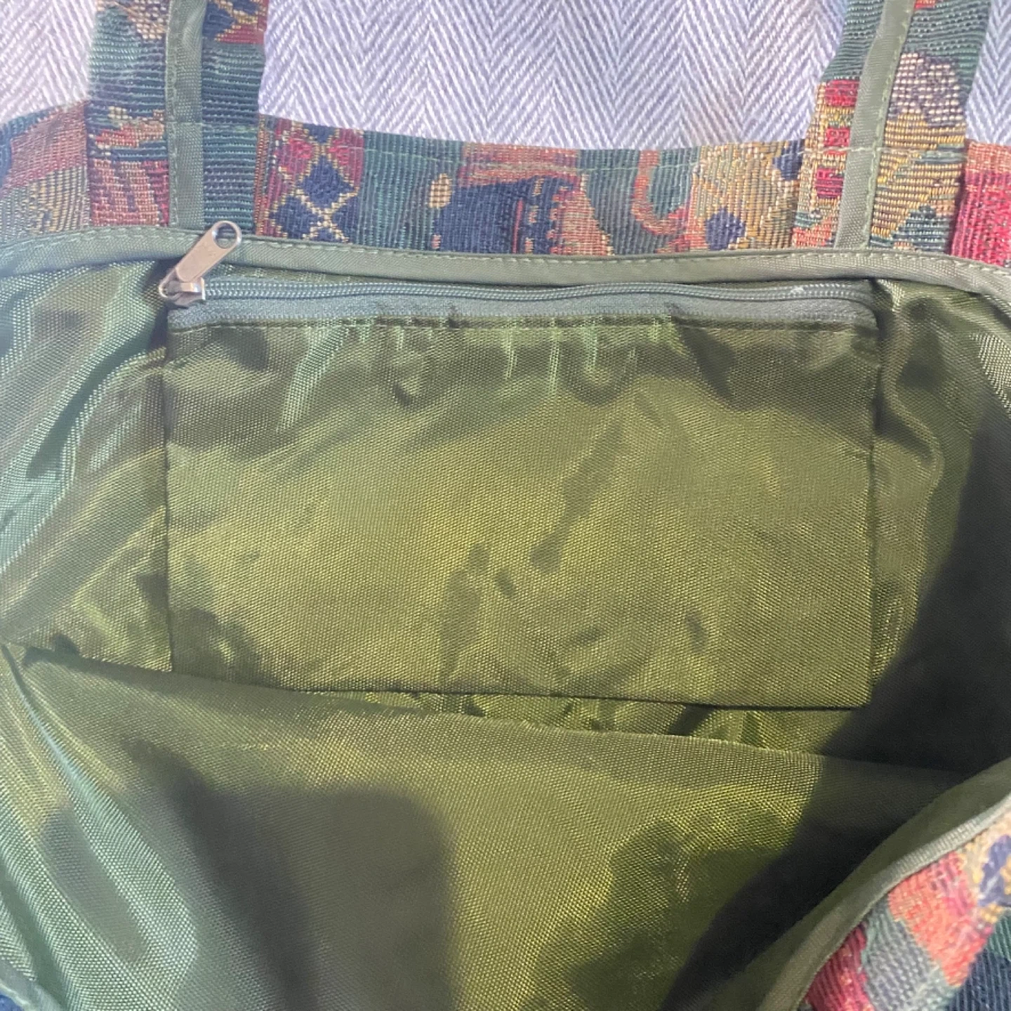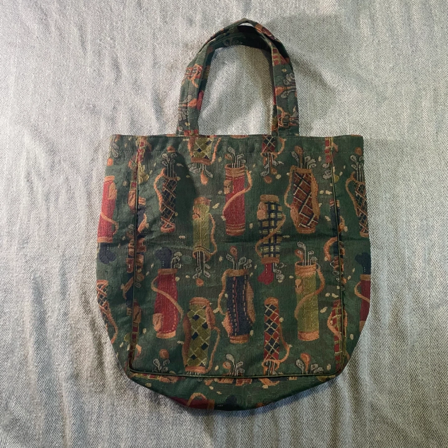 This vintage Lady Rosedale tote bag features a fun golf print. It's made with 100% cotton and has a 100% nylon lining. This bag would be great for carrying golf essentials or everyday items!