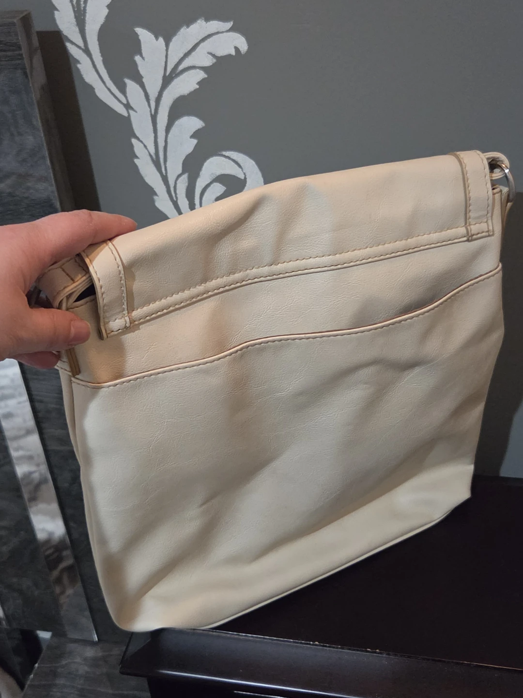 Brand new cream shoulder bag by Relic, made of durable faux leather. Features a stylish flap closure with a convenient front zip pocket.