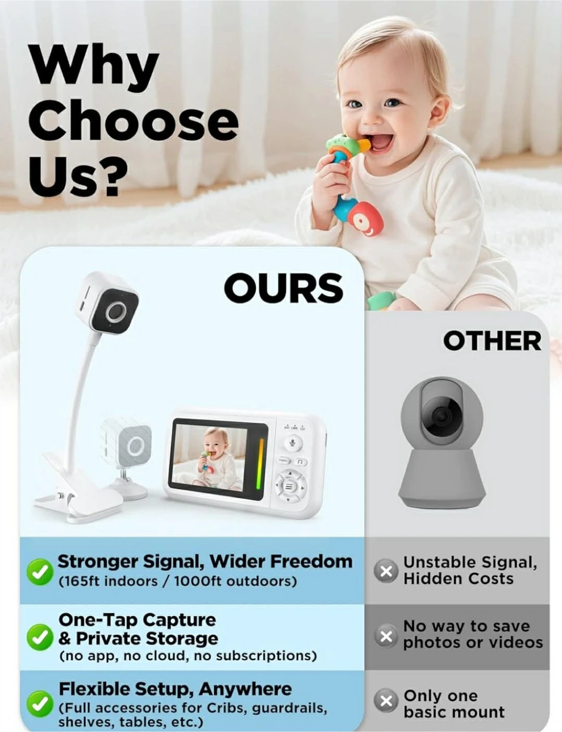 Baby Monitor with HD 1080P Camera and Wireless Display
