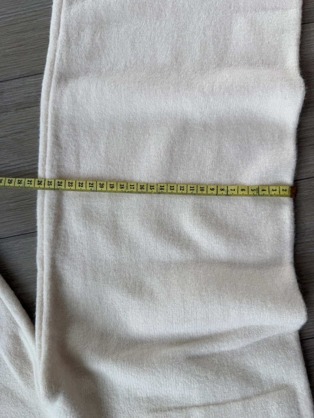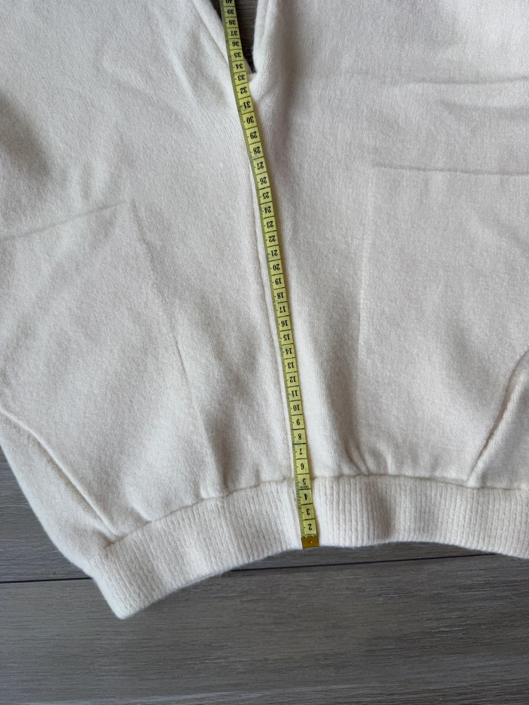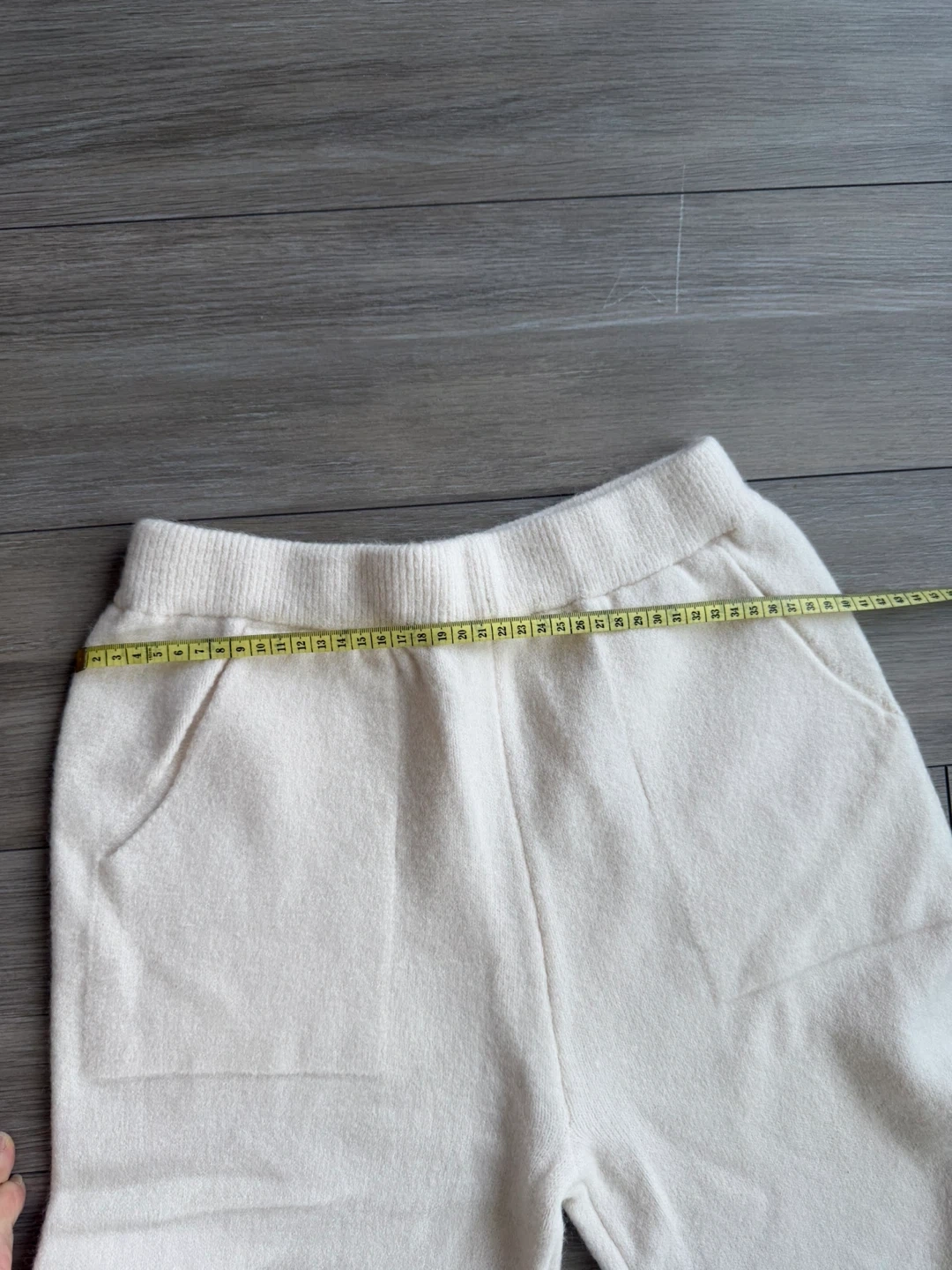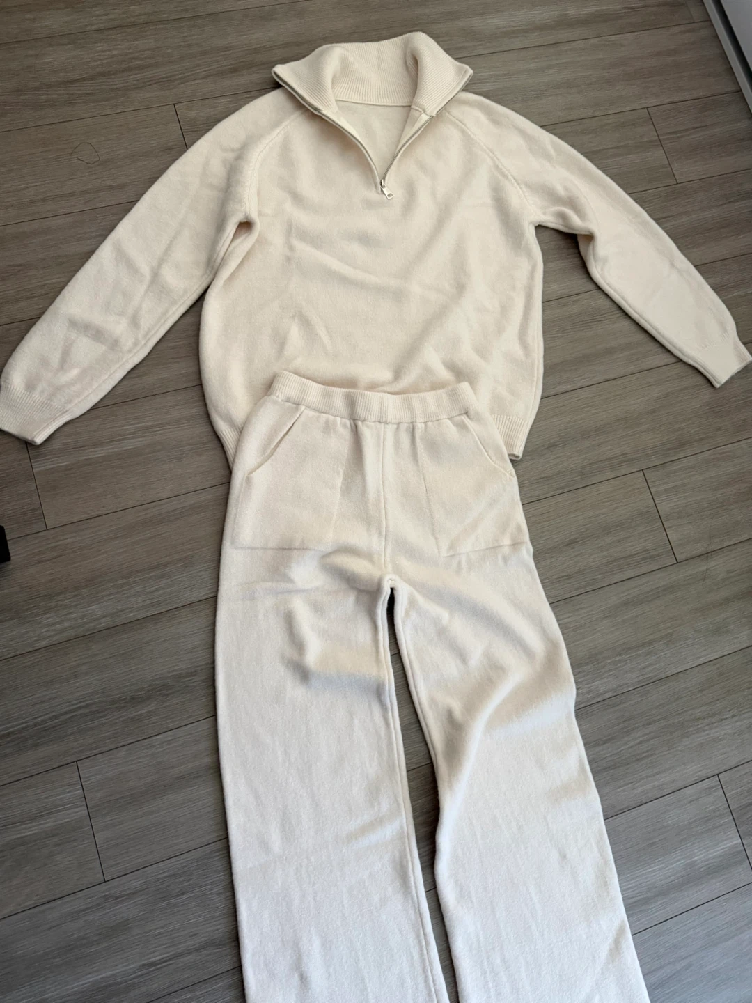 Cream knit quarter-zip sweater and matching pants. Sweater chest measures approx. 22 inches. Pants waist measures approx. 14 inches.