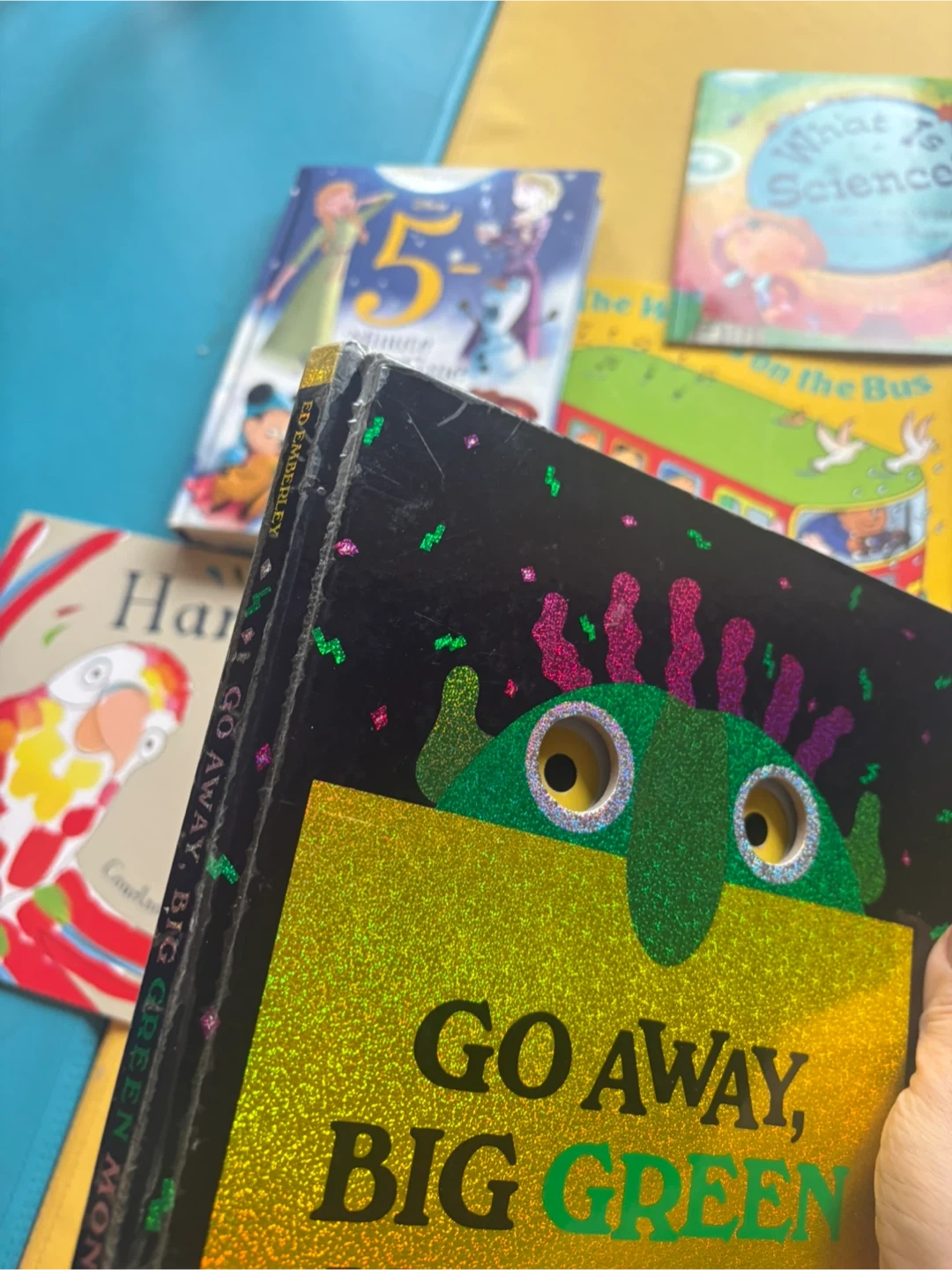 Note: 2 books (Go Away, Big Green Monster and Who Stole the Cookies) show heavy wear on the spine/edges and have been reinforced with tape, but are still perfectly readable.